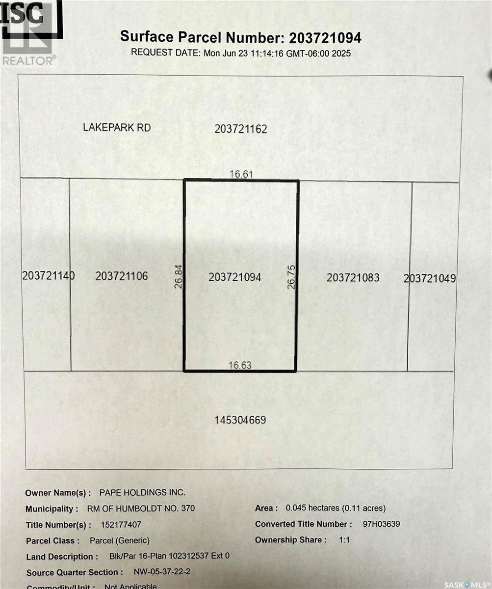 16 Lakepark ROAD — Humboldt Rm No. 370, Saskatchewan