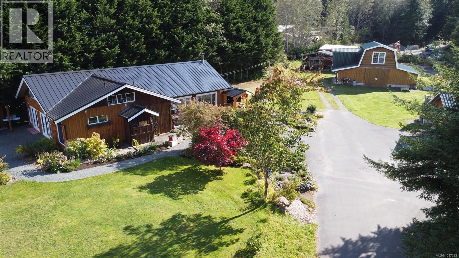 Check out 885 Lanqvist Rd in picturesque Hyde Creek, where craftsmanship, natural abundance, and coastal serenity unite on nearly two acres of ocean-view land. Ideal for those seeking a blend of coastal living and rural independence, this property will appeal to gardeners, equestrians, hobby farmers, and anyone drawn to a peaceful, self-sustaining lifestyle. This 1.5-storey home (built 1999, addition 2018) blends artistry and comfort, featuring cedar, spruce, and fir shiplap throughout. The 3-bed, 2-bath residence offers an airy, open layout filled with light and Pacific views. Enjoy a Blaze King wood stove (WETT inspected), heat pump (2022), and warm fir-edge-grain kitchen floors that add timeless character. Every detail reflects care and thoughtful design, from fine joinery to windows framing vibrant perennial, bulb, and ornamental gardens, and thoughtfully placed cisterns throughout the grounds ensure an easy, reliable water supply for maintaining the lush gardens and seasonal blooms. The property celebrates the richness of the land—mature trees, fertile soil, and established plantings that burst with colour through the seasons. A timber-frame barn (2003) features three powered stalls with plumbing, concrete floors, and hayloft storage—ideal for horses or versatile workshop use. Additional outbuildings include an insulated shop with large windows, a powered chicken coop, a greenhouse (2019), a patio bar (2021) with live-edge seating and aggregate terrace, a covered carport (2021) with glass roll-up door, and a powered woodshed. Connected to community sewer and served by a drilled well, this remarkable acreage offers flexibility for hobby farming, equestrian pursuits, gardening, or creative retreat living. The land itself provides generously, offering peace, productivity, and inspiration in equal measure. Here, ocean breezes mix with the scent of cedar and blooming flowers—a truly special North Island sanctuary where nature and craftsmanship flourish side by side. (id:63357)