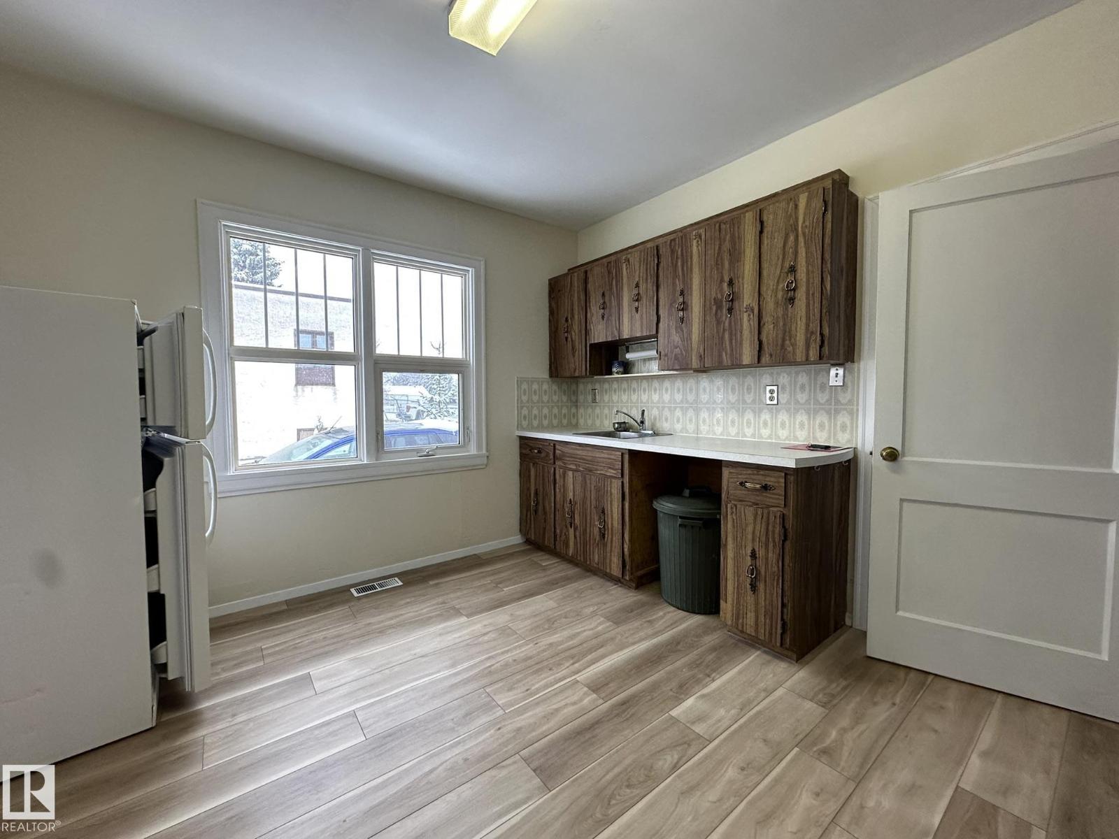 Newly renovated home on a huge lot near everything in Smoky Lake. This charmer has had several updates of late, such as flooring, paint, windows and roof. You'll appreciate the large eat-in kitchen with access to the backyard, the living room is roomy and comfortable, there are also 2 bedrooms on the main floor as well as an updated bathroom and pantry. The basement boasts full height ceiling and large windows as well as another bedroom, shower, bathroom, laundry facilities and tons of storage. The land is private and well landscaped, the long driveway can accommodate several vehicles and the garage has power. The half acre yard boasts tons of opportunities for the outdoor enthusiasts. (id:63357)