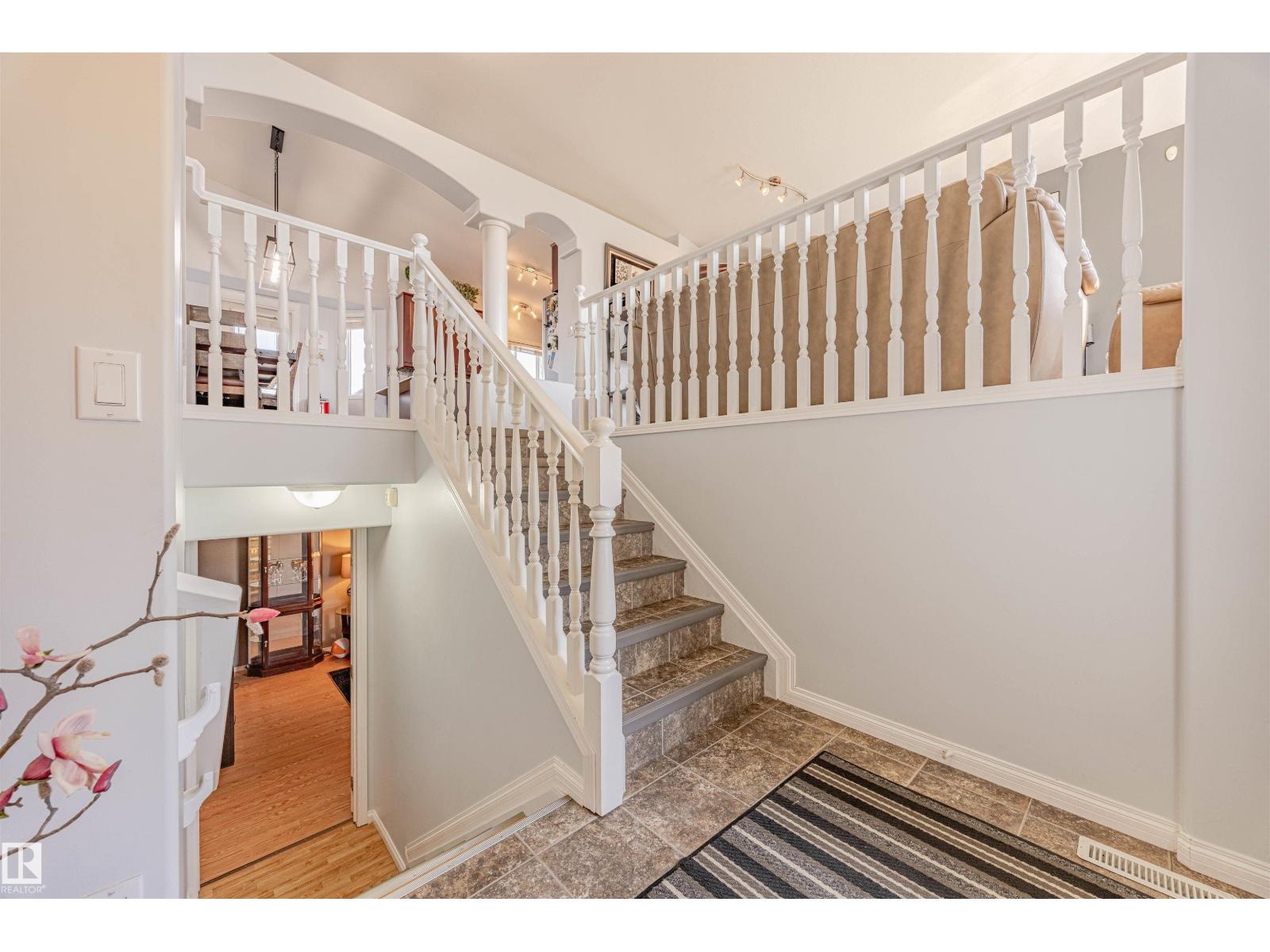 Roof 2023. Hot Water Tank 2025. Furnace & Humidifier 2018. Central Air Conditioning added in 2018. Other recent updates include newer flooring and toilets. HEATED double oversized attached garage. Welcome to this spacious & inviting bi-level in Mayliewan, perfectly situated on a quiet street backing a green space walkway. Soaring vaulted ceilings & an open floorplan. Large windows. Home blends style & functionality. Upgraded kitchen showcases cherry soft-close cabinetry, newer counters, Samsung SS appliances, a corner pantry, & a bright dining nook that opens to the deck. Main level includes two bdrms & a full bath, while the upper-level primary retreat boasts a walk-in closet & luxurious 5-pc jetted ensuite. Fully finished basement offers a large family room, 2 additional bdrms, 3-pc bath, & laundry. Enjoy a landscaped fenced yard, storage shed, & proximity to parks, schools, public transit & shopping—an ideal home for families seeking comfort and convenience. Taxes $4,465 for 2025. Lot size 466 sq m. (id:63357)
