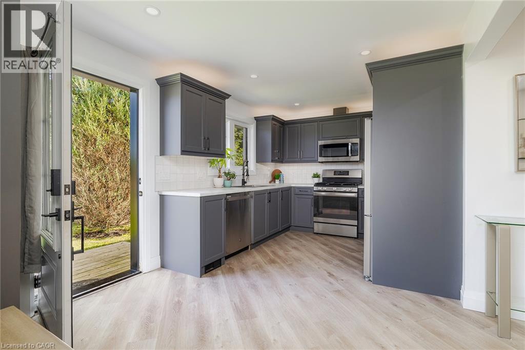 Nestled on a generous.35 acre lot, this beautifully updated bungalow blends country-like surroundings with unbeatable convenience. Located on the outskirts yet within walking distance to walmart, restaurants and just a 5 minute drive to more major amenities, it offers the best of both worlds. Inside, a bright and airy layout welcomes you with vaulted ceilings in the living room and a striking floor-to-ceiling tiled gas fireplace as the centerpiece. Neutral tones flow seamlessly throughout, creating a calm and inviting atmosphere. The home features 2 bedrooms and 2 bathrooms, thoughtfully designed with a lovely sense of flow. Step outside to enjoy a large wooden deck, perfect for entertaining, overlooking a fully fenced yard that backs onto a tranquil farmer's field - a rare backdrop offering both privacy and charm. Enjoy ample parking for 8+ cars for all your family, friends, and recreational toys. With stylish updates, modern comfort, and a location that places everything you need within easy reach, this bungalow is an exceptional find for those seeking both serenity and convenience. (id:63357)