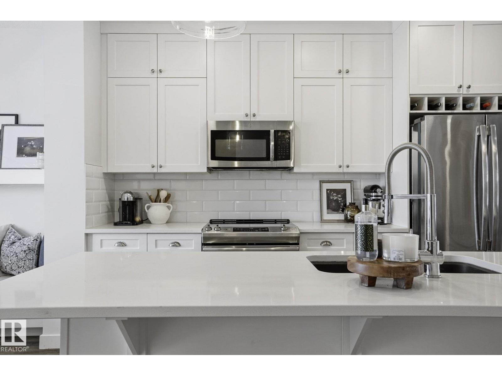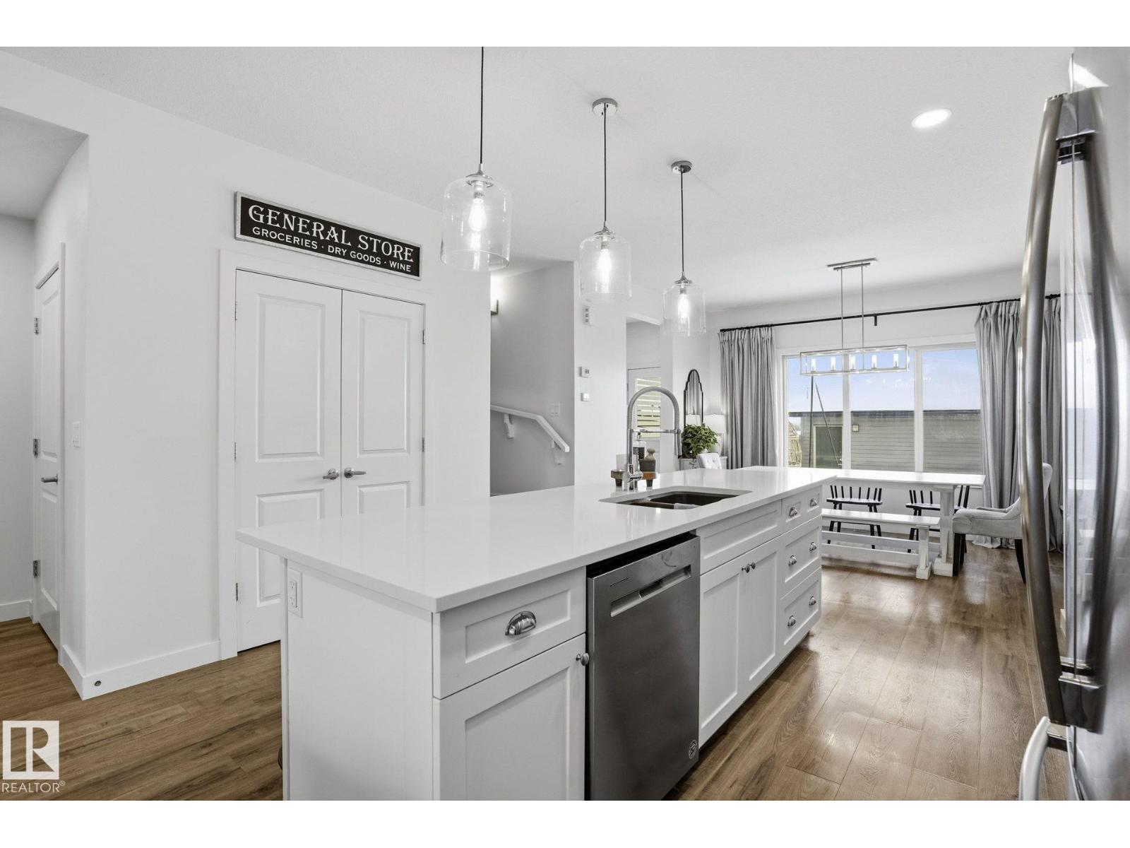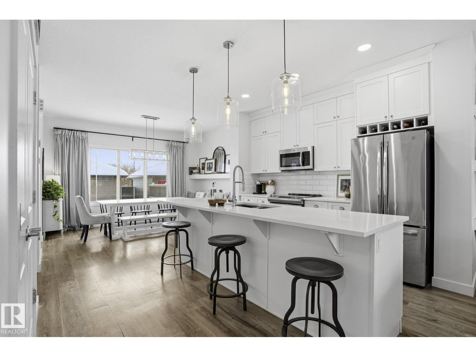 Welcome to this thoughtfully designed 4 bedroom home in the sought-after community of Greenbury, ideally located close to walking trails & schools. Built on SanRufo’s Emily floor plan, the main level offers 9’ ceilings, vinyl plank flooring, cozy living room w/electric fireplace & features upgraded lighting. Contemporary kitchen features floor-to-ceiling cabinetry, quartz counters, large pantry & custom wainscoting. The west-facing front window floods the home with natural light. Mud room provides access to the fully fenced back yard. Upper level features 3 bedrooms, has no carpet, includes the convenience of laundry room; primary bedroom includes walk-in closet w/built-in shelving & 4-pc ensuite complete w/double sinks & tile shower. Fully finished basement includes large family room, 4th bdrm & 3pce bath. Additional features include triple pane windows, stone front exterior, exposed aggregate stairway case & double garage w/back alley access. (id:63357)