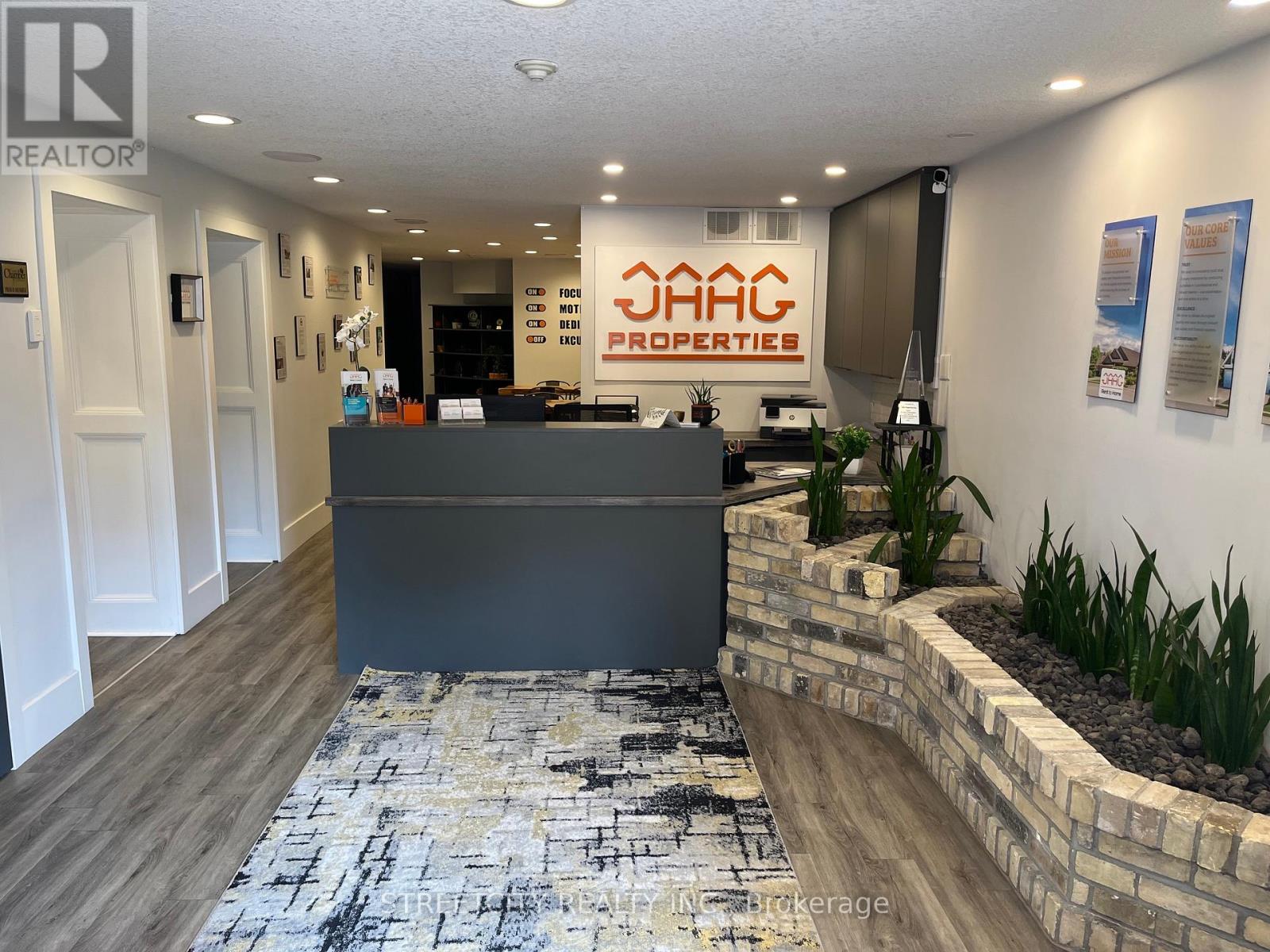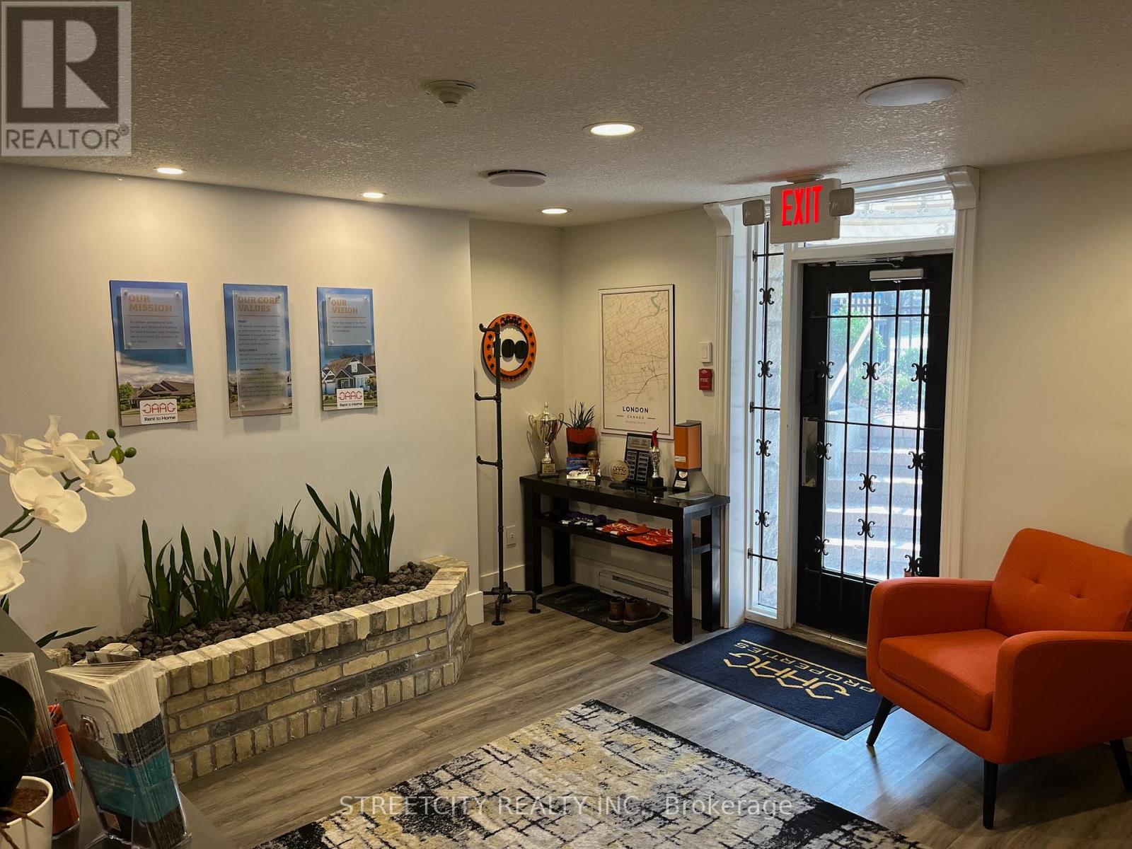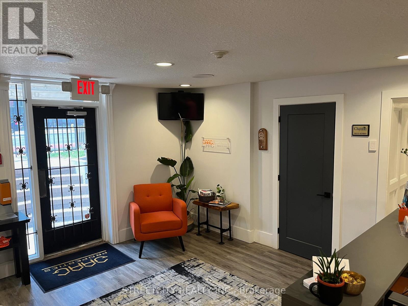 Prime Downtown Office Space for Sale or Lease - 440 Wellington St, London ON Exceptional opportunity to own or lease a beautifully renovated commercial office space in the heart of Downtown London. Situated prominently at the corner of Wellington Street and Queens Avenue, this high-exposure location offers direct street frontage in one of the city's busiest business corridors. Designed with a modern open-concept layout, this versatile space features a custom reception area, multiple private offices, two bathrooms, and stunning exposed brick that adds both character and contemporary style. Premium signage opportunities and consistent foot and vehicle traffic make it an ideal location for growing or launching your business. The property includes two dedicated private parking spaces, with additional spaces available for rent. It's conveniently located within walking distance to One London Place, Victoria Park, Canada Life, and Richmond Row, offering easy access to key downtown amenities and services. Don't miss your chance to secure this rare and move-in-ready commercial space in one of Downtown London's most iconic brownstone buildings. (id:63357)