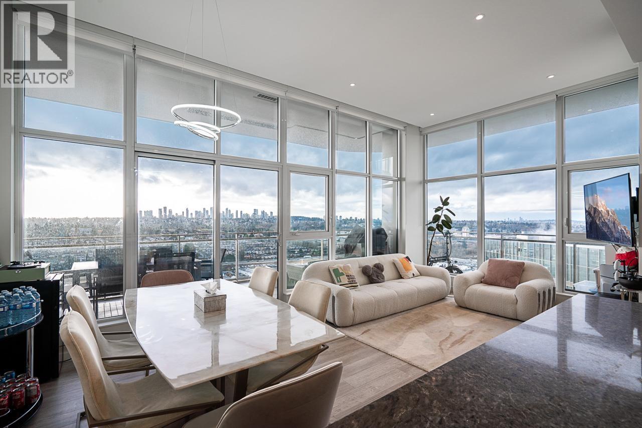 Luxury living in the stunning ETOILE sub-penthouse by Millennium Development, S/W facing with unobstructed views of Mount Baker and Metrotown. This elegant 2 bed, 2 bath plus den home features 10.8 ft ceilings, floor-to-ceiling windows, air conditioning, and refined modern finishes. The chef-inspired kitchen offers a waterfall island, Bosch appliances, and quartz countertops, complemented by spa-like bathrooms. Enjoy a 240 square ft covered balcony with heated floor and ceiling. Over 37,000 square ft of rooftop amenities include fitness centres, lounges, steam rooms, a 50 ft pool, hot tub, and BBQ area. Steps to Holdom SkyTrain, shopping, dining, Burnaby Lake, Christine Sinclair Community Centre, and Burnaby Tennis Club. Side-by-side parking, locker, Modo car share. Pets and rentals allowed. (id:63357)