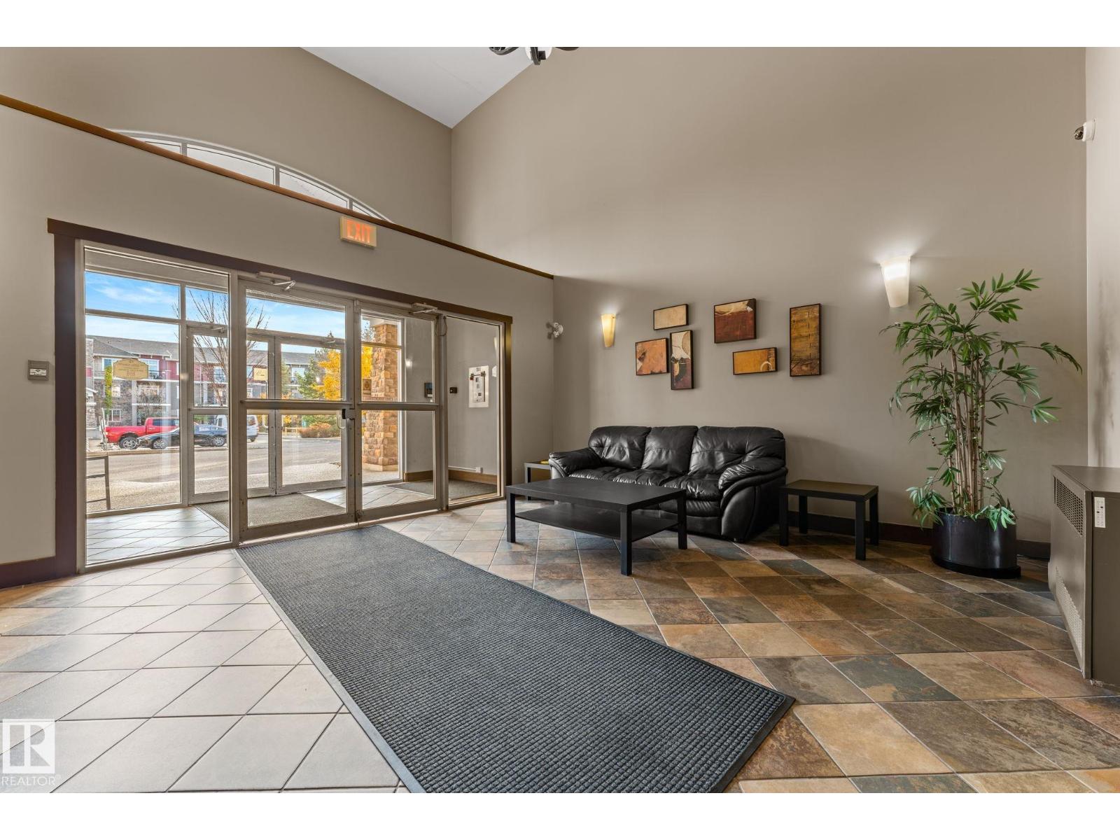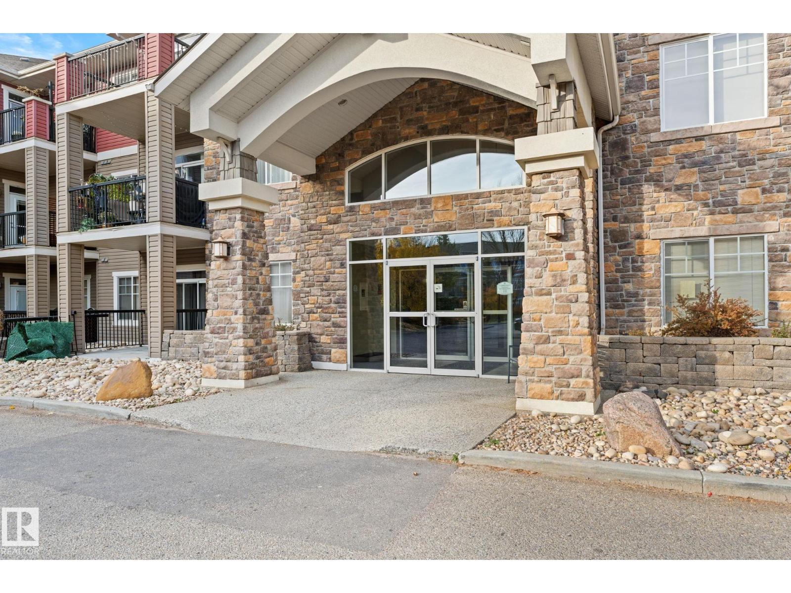 Rare offering, 3 bedroom, 2 bath top-floor corner unit w/ massive wrap-around southeast balcony. Extra large unit at over 1300 sq ft, vaulted 12-ft ceilings, a bright open-concept layout, and a. The spacious primary suite is privately located away from the other bedrooms, easily fits a king bed, and includes dual walk-through closets and a 3-piece ensuite with double sinks and a walk-in shower. This immaculate unit offers newer flooring (no carpet), A/C, gas fireplace, gas BBQ hookup. The kitchen, dining, and living areas flow seamlessly, creating an airy, light-filled space perfect for entertaining. Large laundry room w/ extra storage, 2 titled heated underground parking stalls (one beside the elevator and one beside the stairwell), and storage locker. Condo fees incl. heat, water, and sewer. Pet-friendly building offers premium amenities: fitness room, theatre, games lounge, guest suite, and car wash bay Situated, within minutes of major shopping, dining, and quick access to the Anthony Henday. (id:63357)