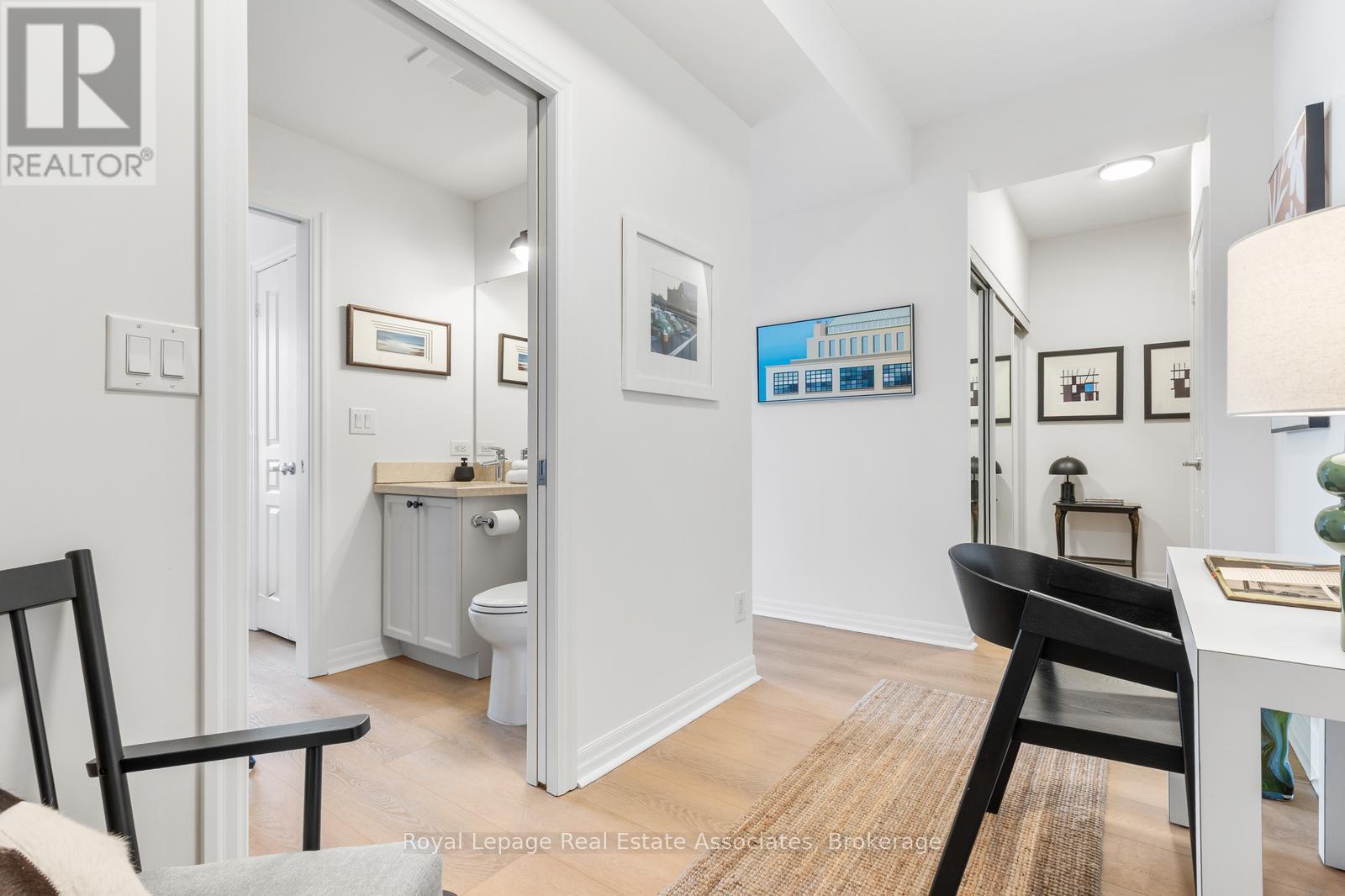 Enjoy This Special Solstice Condo! Big Sky Windows & 9' Ceilings With New Lighting, All Freshly Painted With Gorgeous 9" Wide Plank Flooring Throughout. Terrific Functional Floor Plan. Foyer Has Huge Triple Wide Mirrored Closet For Extra Storage. Separate Ensuite Laundry Closet. Enter Large Kitchen With Sparkling New S/S Frigidaire Stove, M/W & D/W. The Wide Granite Counter Provides Lots of Prep Space And Seats 3-4. The King Sized Bedroom Has His & Her French Door Closets And Semi Ensuite With Jetted Soaker Tub, Neutral Tile, Granite Counter/Under-mount Sink. SO Convenient To Pass Through To The Large Flex Space - Think Den/Office/Guest/Nursery/Dressing Area. Your Sunny Balcony Has Hydro, Horizon Views Of The Lake AND Overlooks City Hall. Explore The Solstice Amenities - Pool, Sauna & Steam, Hot Tubs, Gym, Billiards, Party & Work Spaces. Outdoor Garden BBQs Too! Neighbourhood Offers Square One, Living Arts Centre, Library, Restos And Abundant Transit Options. Friendly People & Pets Accepted. Available Any Time. Come And Get It! (id:63357)