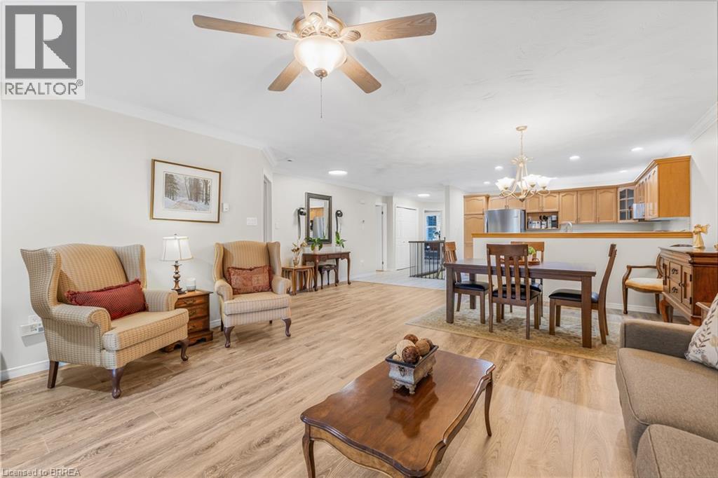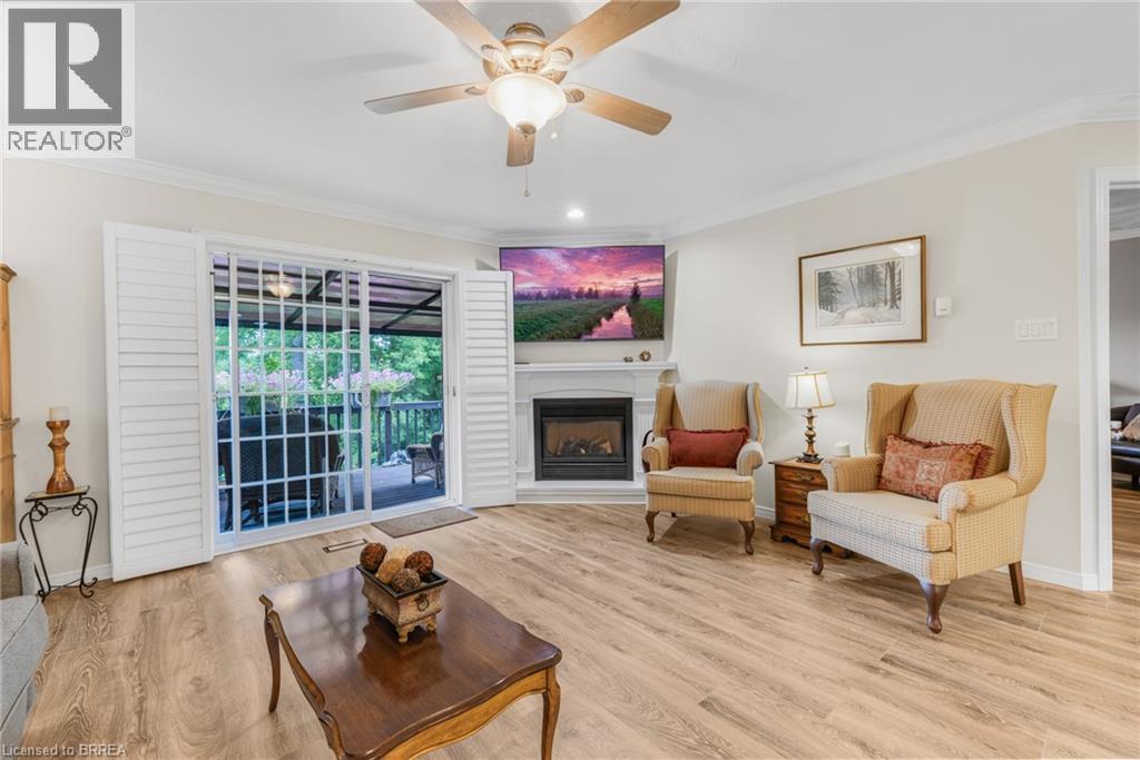 Welcome to 53 Beverly Street East, Unit #21, in the charming town of St. George! This stylish bungalow-style Condominium is thoughtfully crafted to combine functionality with modern charm, offering an inviting retreat in the heart of this picturesque community. Step inside to a bright and airy open-concept main floor, where the well-appointed kitchen flows seamlessly into the dining and living areas. The functional kitchen is equipped with sleek stainless steel appliances, an abundance of cabinetry for all your storage needs, and a floor-to-ceiling pantry that provides both convenience and organization, all while blending style with everyday practicality. In the living room, cozy up by the warm and inviting gas fireplace or step through the sliding patio doors to a spacious 10x12 back deck with a gazebo—perfect for relaxing, entertaining, or simply taking in the beautiful view of the protected green space. The main-floor primary suite offers comfort and convenience with access to a stylish 4-piece bathroom and an integrated laundry area, creating a layout designed for easy living. The fully finished lower level enhances the home’s versatility with a large recreation room, an additional bedroom, and another elegant 4-piece bathroom—ideal for overnight guests or extended family. Additional features include elegant California shutters, tasteful décor throughout, and a maintenance-free lifestyle with all exterior upkeep conveniently taken care of for you. With its thoughtful design, modern comforts, and low-maintenance lifestyle, this home is perfect for those seeking both convenience and charm. Whether you’re looking to downsize, enjoy worry-free living, or simply settle into a welcoming community, 53 Beverly Street East, Unit #21 offers the ideal place to call home in the heart of St. George. (id:63357)