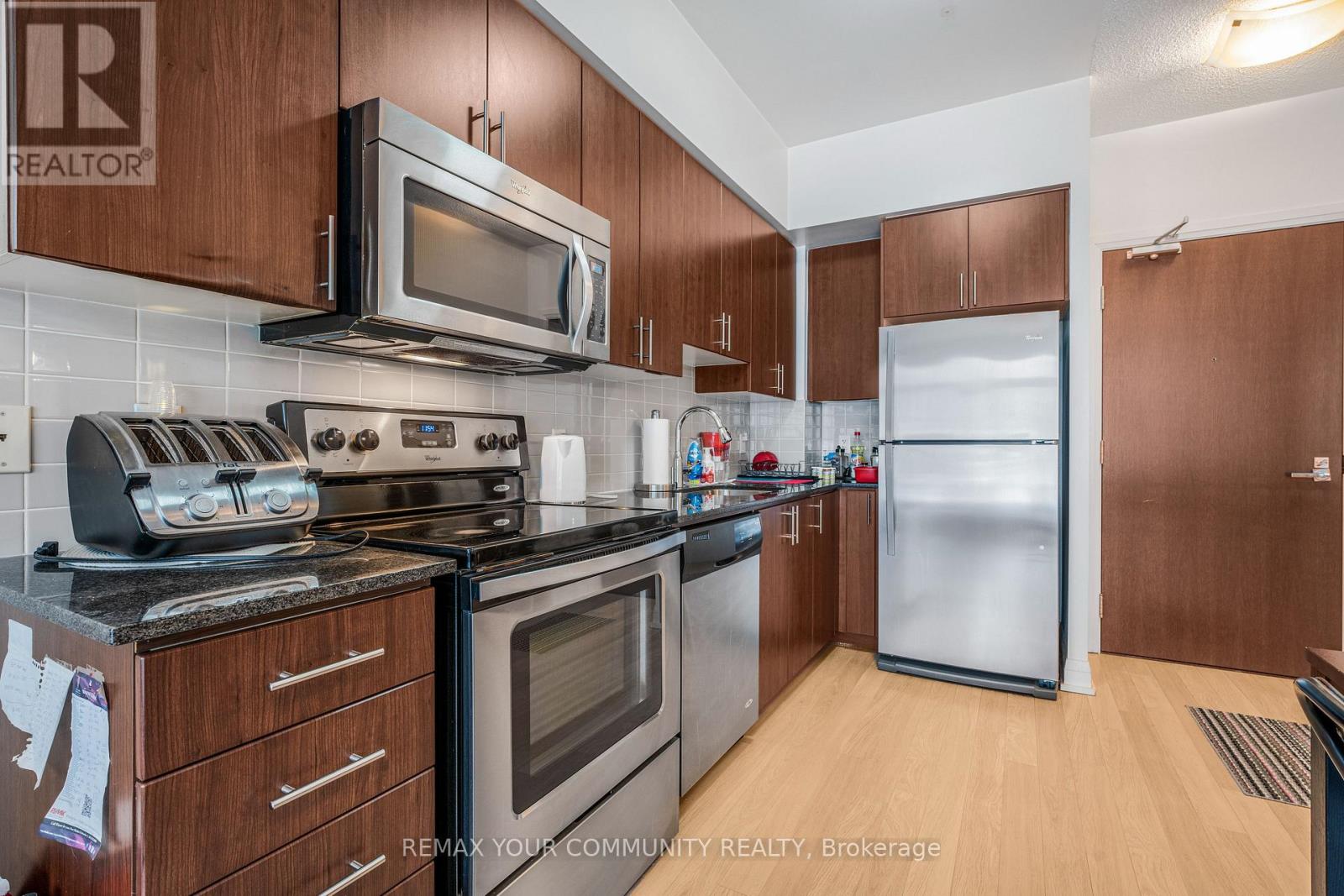 Welcome to a bright and thoughtfully designed 1-bed + den condo at The Fountains, nestled in the heart of Vaughan's desirable Beverley Glen community. This comfortable ~645 sq ft suite features an open-concept layout with 9-foot ceilings, abundant natural light, stainless steel appliances, and in-suite laundry. Step outside to your private ground-level patio - a perfect extension of your living space for morning coffee or casual evenings. Residents enjoy a full range of resort-style amenities including an indoor pool, fitness centre, party and games rooms, 24-hour concierge and more. Ideally located just steps from Promenade Mall, shops, restaurants, parks, transit and with easy access to Highways 7, 407 and 400, this home strikes a great balance of convenience and lifestyle for first-time buyers, investors or anyone seeking low-maintenance urban living. (id:63357)