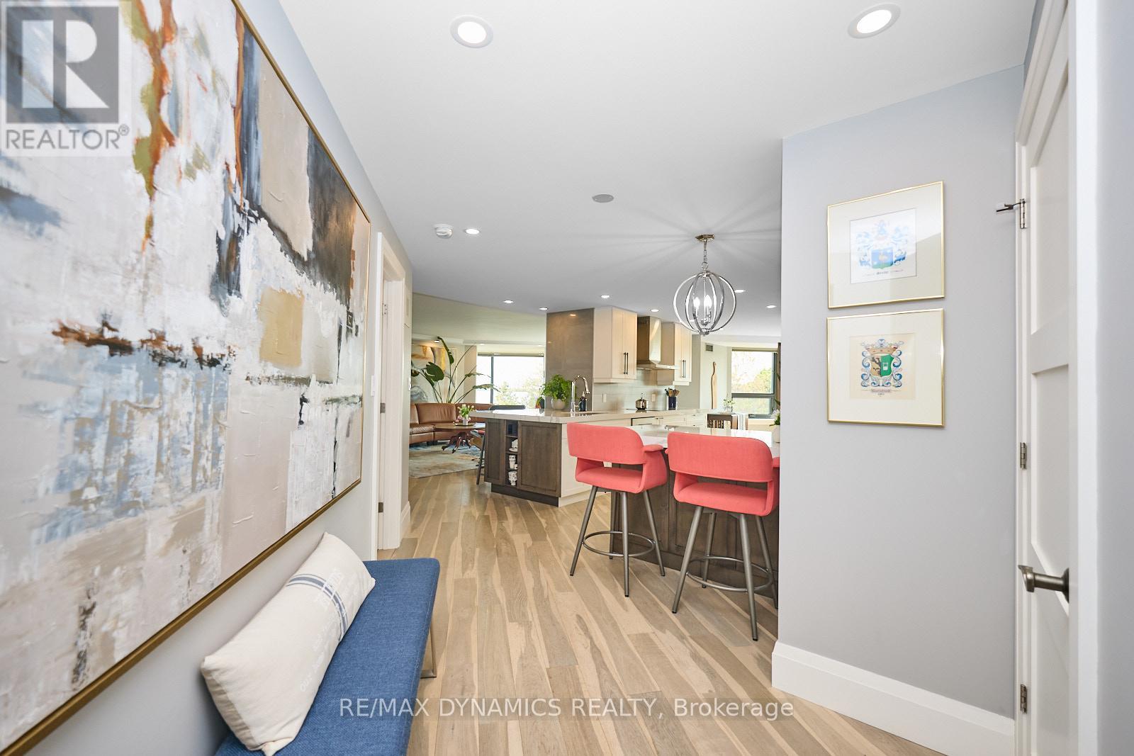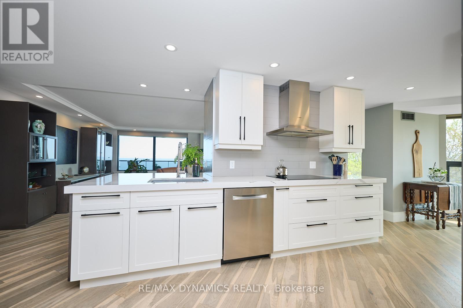 Every once in a while, you walk into a home that truly takes your breath away - and this is one of them. This stunning condo is the epitome of luxury waterfront living, offering spectacular, unobstructed views of Lake Ontario from Niagara-on-the-Lake all the way to Burlington, and across the water to Toronto's iconic skyline. Imagine relaxing on your oversized balcony, glass of wine in hand, listening to the gentle sound of the water just below - pure serenity. No expense was spared in this thoughtfully and completely renovated suite. High-end finishes are found throughout, including stainless steel Bosch appliances and Hunter Douglas automated blinds.The bright, beautifully designed kitchen features Cambria countertops and offers both style and function - perfect for creating gourmet meals for family and friends. The open-concept living and dining area is ideal for entertaining, with panoramic lake views that showcase breathtaking sunsets. Versatility meets elegance with a dedicated office that easily doubles as a second bedroom, thanks to a sleek Murphy bed that's ready in seconds. The primary bedroom is a true retreat, boasting stunning lake views, direct access to the balcony, and a luxurious ensuite complete with a glass-enclosed shower and a soft-finish soaker tub. The second bathroom is a clever and efficient use of space, featuring a spacious shower with grab bars for added comfort and accessibility. Additional highlights include all-new building windows (2023), ample visitor parking, and a prime location just steps from the waterfront trail, parks, and convenient shopping.This is one of those homes you simply must experience in person to fully appreciate everything it has to offer. (id:63357)
