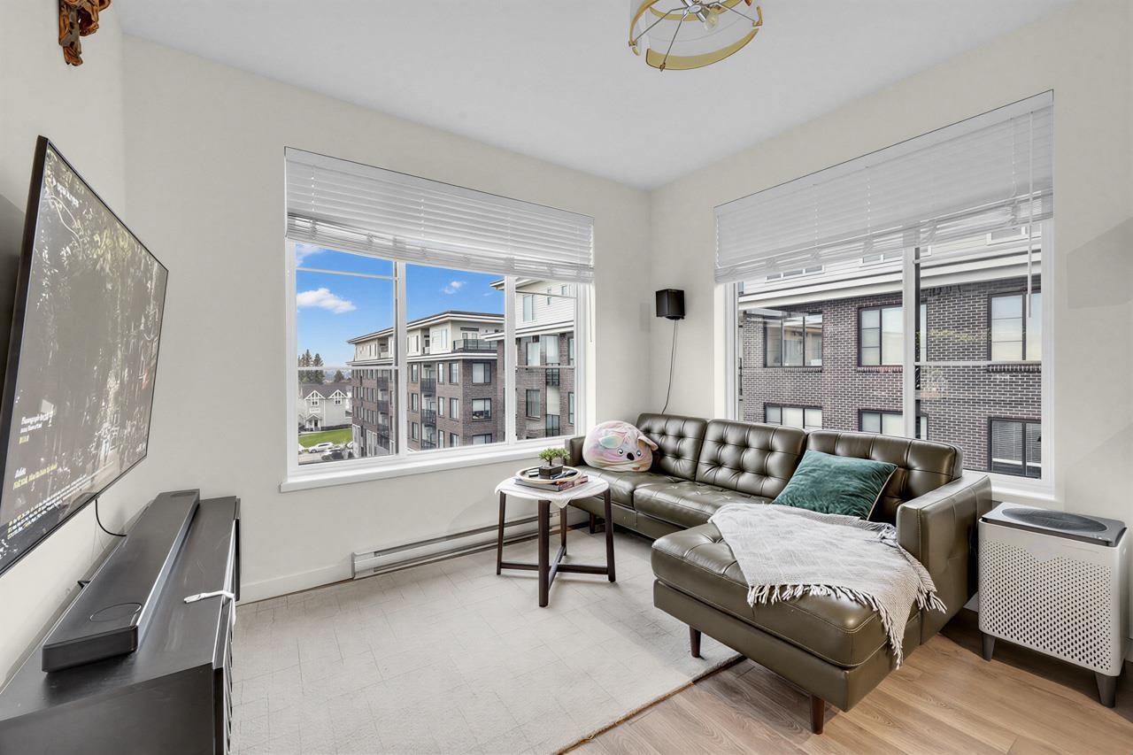 Welcome home! This bright, top-floor home offers a smart, open layout with large windows that bring in plenty of natural light. The modern kitchen flows seamlessly into the living space, making it perfect for everyday living or hosting friends. Step out onto your private balcony to relax after a long day. Located close to transit, shopping, restaurants, and essential amenities, this is a great place to call home for first-time buyers or those looking to downsize comfortably. Be along the newest skytrain line connecting Surrey to Langley! Open House SAT Jan 24th and SUN 25th 2-4 PM! (id:63357)