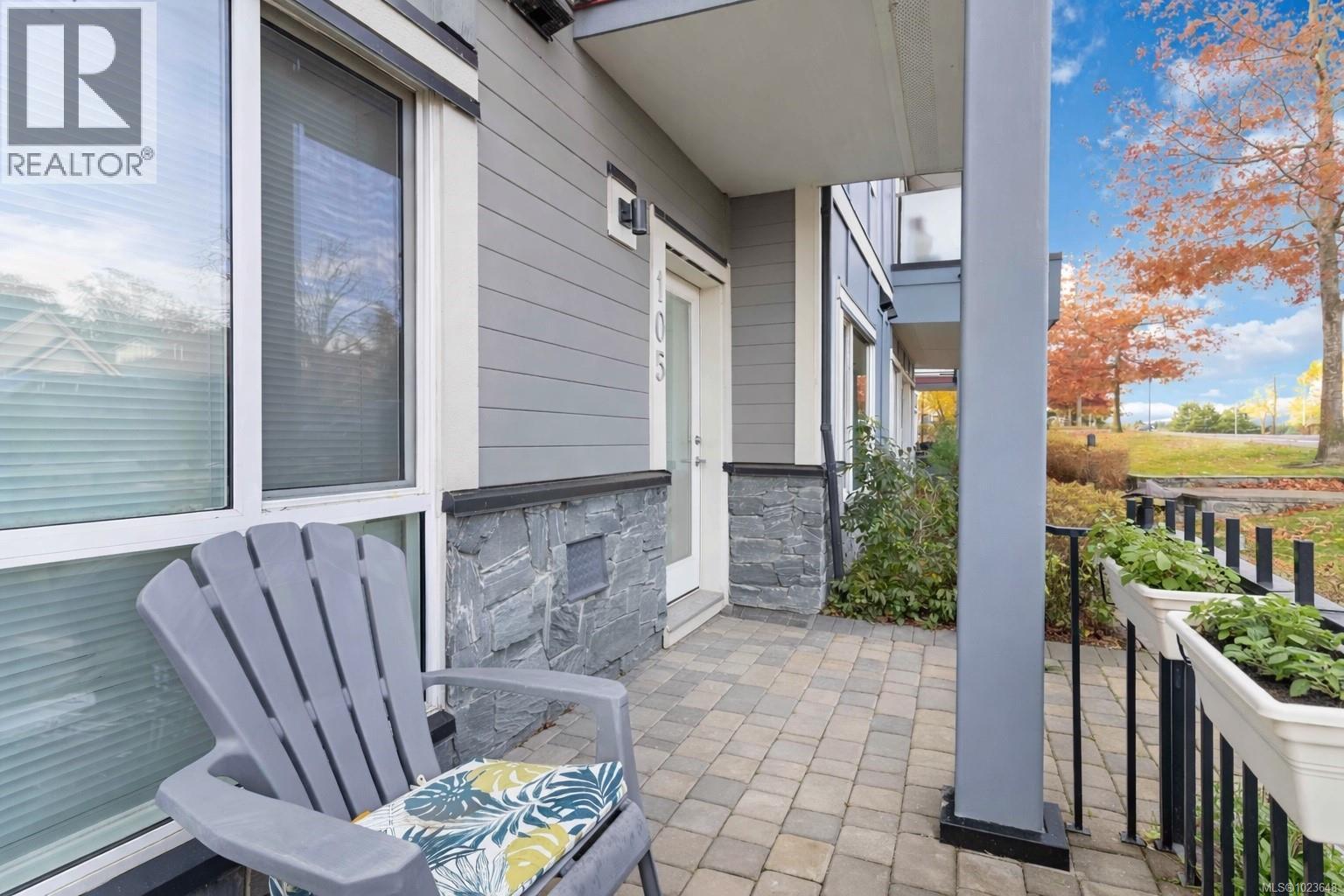 Welcome to 105-4050 Douglas, a pet friendly private entry condo for sale at Christmas Hill Green, that offers the feel of a townhome. The open-concept layout features a spacious L shaped kitchen, perfect for every day living and entertaining. Recent upgrades include a new fridge, hot water tank, and over-the-range microwave, providing peace of mind for years to come. The generously sized bedroom includes a bonus nook ideal for a home office, while the four-piece bathroom offers dual access and in-suite laundry. Additional features included secure bike storage, a private storage locker, and one designated parking stall, plus ample street parking. Centrally located with easy access to the Pat Bay Highway, TCH, and safe bike routes makes commuting to downtown, the West Shore, or BC ferries effortless. Enjoy walking trails at Christmas Hill and Swan Lake just steps away. This pet-friendly condo allows two dogs with no size restrictions, has no rental restrictions, and is move in ready. (id:63357)