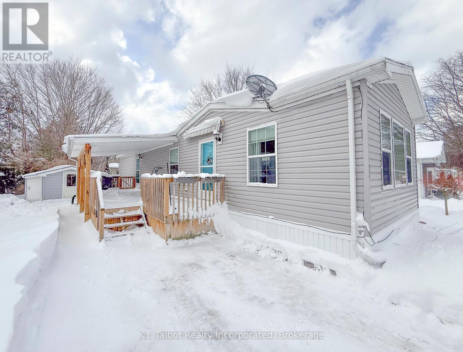 This modular home offers a comfortable and affordable lifestyle along the shores of Lake Huron. Situated on leased land within the established community of Huron Haven Village, it is conveniently located just minutes north of Goderich and close to amenities such as golfing, fishing, trails, shopping, and the local hospital and medical centre. The home features an updated eat-in kitchen with beautiful wood cabinetry, a bright and spacious living room, a three-piece bathroom with a seated shower, a laundry area, and two bedrooms. This is a well-maintained home on a concrete slab featuring propane forced-air heat and air conditioning. The Outside, you will find a large covered deck and a shed that can be utilized as a workshop. The property is also just a short walk from the community center and outdoor pool. The current monthly fee is $880.41 which covers the land lease, taxes, water, and sewer. If you are looking for a comfortable and enjoyable living experience, this could be the perfect home for you. (id:63357)