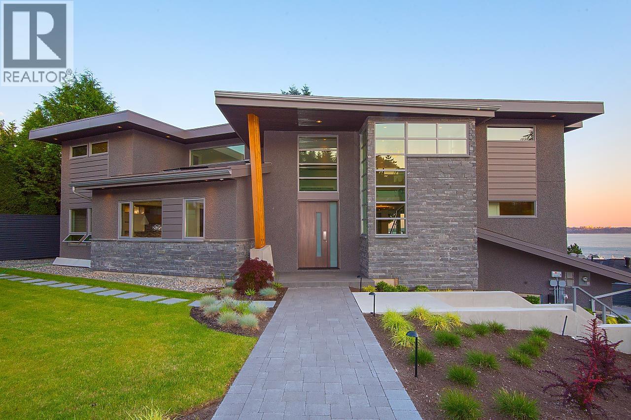 STUNNING LUXURY HOME WITH SPECTACULAR PANORAMIC VIEW FROM LIONS GATE BRIDGE/DOWNTOWN to UBC/VANCOUVER ISLAND and WITH FOUR SOUTH FACING BEDROOMS ON UPPER FLOOR. This amazing home with a gated entrance and huge flat driveway and 3-car garage features a sensational open floor plan with generous living room, dining room, over-sized family room, fantastic gourmet kitchen with Miele appliances, WOK kitchen and office overlooking the spectacular view. UPPER: large primary bedroom with elegant en-suite and walk-in PLUS 3 generous SOUTH FACING en-suited bedrooms. LOWER: large rec-room, media room, wine cellar, wet bar and 5th en-suited bdrm. PLUS: Smart Home, Signature Stone fireplace, stunning hardwood flooring, infinity-edged swimming pool with private change room, metal roof & much more. (id:63357)