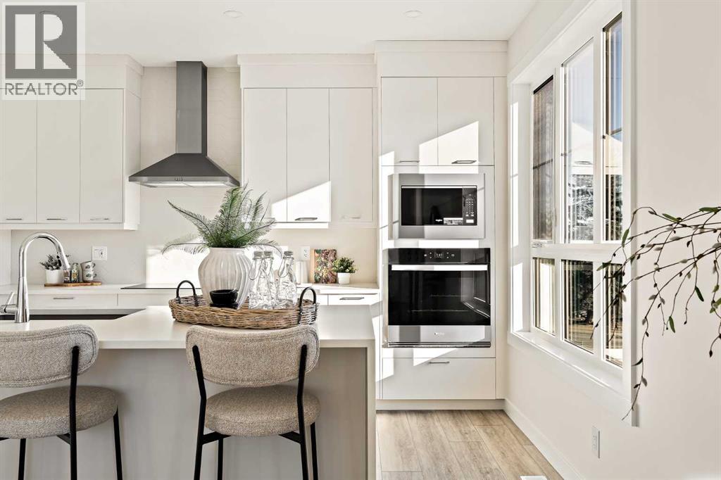 Welcome to the Torrey at Crown Park - an exceptional opportunity offering a brand new move-in ready townhouse that features 3 bedrooms, 2.5 bathrooms and a private double attached garage. Featuring nearly 1,700 ft2 of living space, this end-unit townhome is perfectly situated with optimal southwest exposure providing a bright living space that is flooded with natural light. The bright and open main living area features a stunning kitchen with endless upgrades including built-in appliances, a waterfall quartz island and timeless white cabinetry. The kitchen has been designed for entertaining, located directly off of the expansive main living area. Walls of windows surround the entire main level, providing you with a naturally lit living space all year long. The ~17'x16' great room has ample space for virtually any furniture configuration and opens to the large dining area - creating a seamless flow between spaces. The main level is complete with a 2 pc powder room and direct access to the sprawling 26' balcony that spans the width of the home. The outdoor living space is equipped with a BBQ gas line and hose bib, adding to everyday convenience. The upper level has been thoughtfully designed with the primary suite spanning the width of the home and the secondary rooms and bathroom on the opposite end. The ~12'x12' primary bedroom has ample space for a king bedroom suite and includes a walk-in closet and a private 4 pc ensuite with dual sinks and a walk-in tiled shower. The upper level is finished by two additional bedrooms, a full bathroom and laundry - ensuring everyday convenience. The flexibility of three bedrooms makes this the perfect family home or guest bedroom with a home office space - providing exceptional long term value. The entry level of the home provides access to the private double attached garage, which has additional space for storage, as well as a large storage room - keeping all of your valuables safe and secure all year round. Located in one of Ca lgary's last inner-city developments, just minutes to downtown Calgary with endless transportation routes at your fingertips, this brand new home offers exceptional value and is perfect for first time buyers, investors, or those wanting a lock-and-leave lifestyle with maintenance-free living. Backed by a comprehensive builder warranty + Alberta New Home Warranty, this brand new home allows you to purchase with peace of mind! (id:63357)