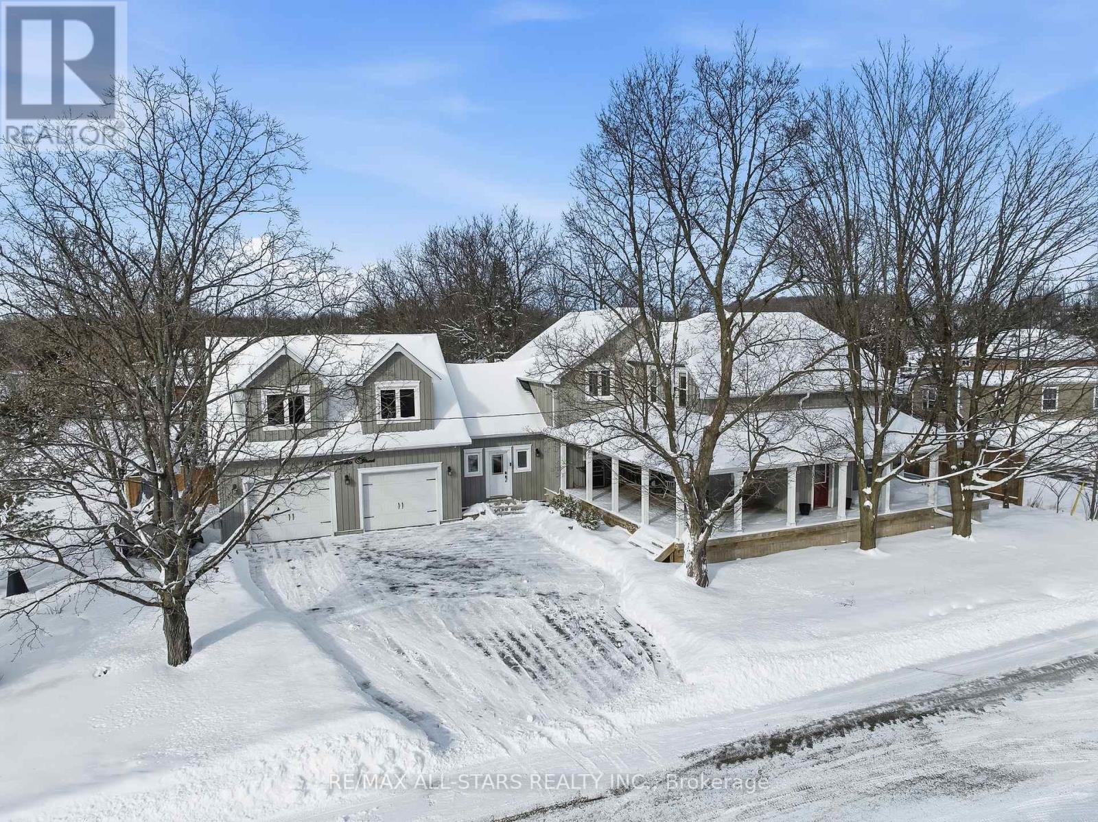 Rare find! Charm & History. Rich in character & thoughtfully updated this circa 1910 residence offers exceptional versatility & space for todays lifestyle. Enjoy warm summer nights on this charming wrap around porch which sets the tone, welcoming you into a warm & inviting interior w/hardwood floors throughout. Main floor features a Country style kitchen w/centre island and original stamped Tin ceiling adding extra charm. Entertaining is fun with the combined dining area & large & bright Great Room w/ stone fireplace w/wood mantel .Enjoy quiet time in the cozy private living room w/stone gas fireplace.Office space off of kitchen w/2pc powder room. Extra office space off of front foyer is the original main floor laundry, plumbing still available.Laundry closet off of kitchen currently. POSSIBILITIES are many... in this HUGE loft over the garage. Games room, home gym or inlaw suite. Located in sought after Village of Seagrave, just 5 minutes from Popular Trading Post Market and approx 15/20min to Hwy 407.Offering a balance of village charm & commuter access. A distinctive property with history, functionality & space for the growing family. Oversized Double Car insulated and heated Garage w/3rd Garage Door to rear yard.3 Gas fireplaces. (id:63357)