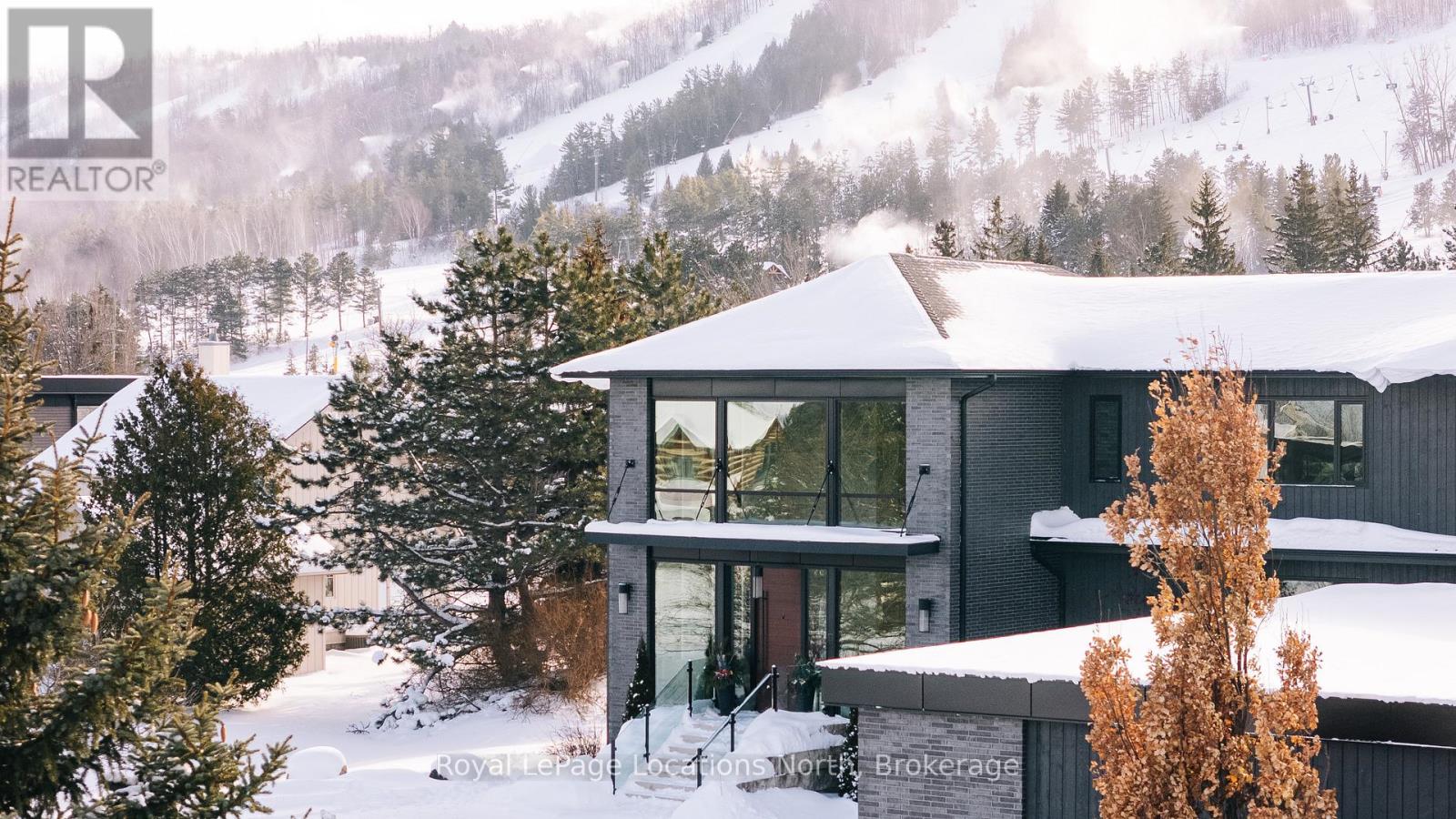 Experience awe-inspiring escarpment vistas from this meticulously designed luxury residenceset in the heart of the Blue Mountains on a quiet, private cul-de-sac. Encompassing over 8,500 square feet of thoughtfully curated living, wellness, and entertaining space on an expansive 0.85-acre lot, this extraordinary home offers seven generously proportioned bedrooms and nine impeccably appointed bathrooms.A dramatic arrival sequence unfolds through soaring two-storey, floor-to-ceiling glazing, where light-filled interiors are anchored by a striking glass floating staircase-an architectural centerpiece that frames panoramic mountain views. The main level is purpose-built for sophisticated entertaining, featuring a refined bar, a bespoke Muti-designed kitchen with premium Miele and Sub-Zero appliances, a sculptural three-sided fireplace, and seamless indoor-outdoor flow to an expansive deck and hot tub. Balancing lifestyle and productivity, the home includes a main-floor gym or studio with mountain views and professional-grade equipment, alongside a private office retreat. Radiant in-floor heating ensures year-round comfort, while a whole-home Sonos system and automated Lutron blinds deliver effortless ambiance. A heated three-car garage connects to a functional mudroom with dedicated storage for ski and outdoor gear.The upper level offers a serene private sanctuary with four luxurious ensuite bedrooms and an elegant lounge wrapped in architectural glass, opening to a walk-out balcony. A glass-enclosed breezeway leads to the primary suite-an exceptional retreat with sweeping views, a spa-inspired ensuite, and multiple walk-in closets.The lower level extends the home's entertaining appeal with three additional ensuite bedrooms, a spacious recreation lounge with kitchenette, wet bar and a private, oversized screening room.Defined by soaring ceilings, refined materials, and architectural precision throughout this residence is a masterful expression of modern mountain luxury. (id:63357)