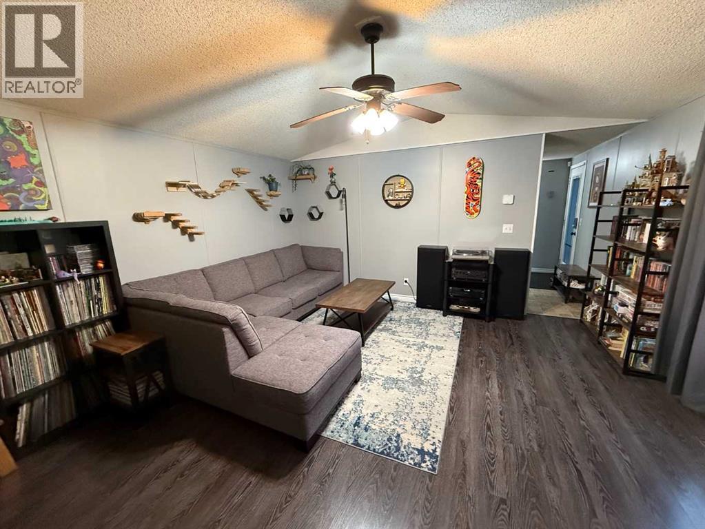 Located on a quiet cul-de-sac in East Hardisty, this home is a great fit for first-time buyers or anyone wanting to downsize without giving up space. Set on a large pie-shaped lot, you’ll love the room it offers—perfect if you’ve been dreaming about adding a garage.The yard is fully landscaped and fenced, with a spacious deck and two sheds, including a 12' x 20' insulated, powered, and electrically heated shed that works beautifully as a workshop or extra storage.Inside, the 1,216 sq ft layout is bright and comfortable with vaulted ceilings, neutral tones, and an open-concept kitchen and living room. The primary bedroom is tucked away at the back for privacy and features a walk-in closet plus a relaxing ensuite with a soaker tub. Two additional bedrooms and a full 4-piece bath complete the home. (id:63357)