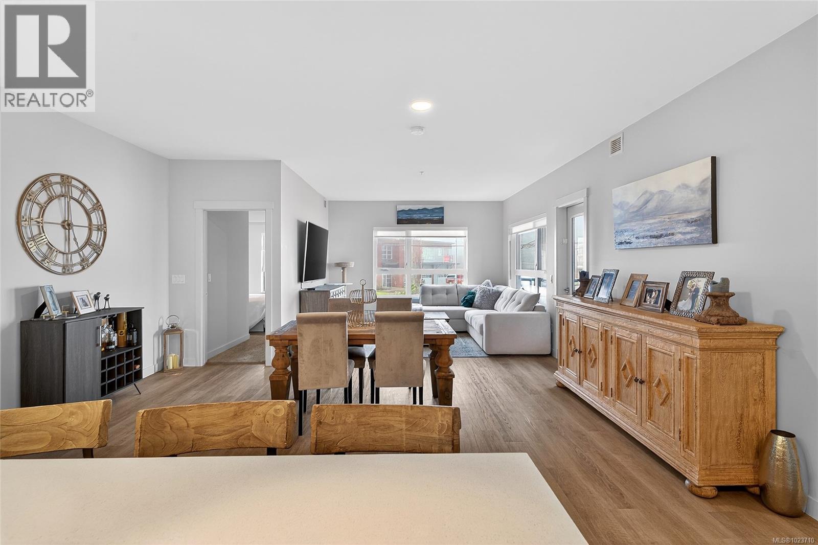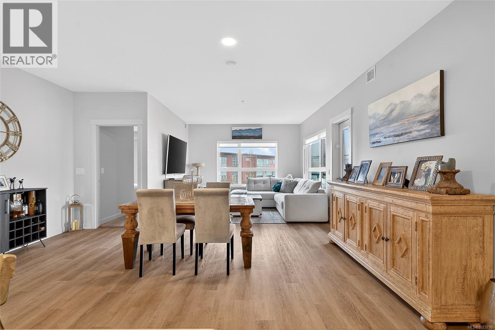 Welcome to Mosaic at Jensen, Parksville’s modern green built condo community in the heart of downtown. This spacious 2 bedroom, 2 bathroom home features the desirable Cabernet floor plan with an open layout and excellent bedroom separation. Northwest facing, the unit offers ocean views toward the Salish Sea and Lasqueti Island, plus a generous balcony ideal for afternoon light and evening sunsets. Inside are 9’ ceilings, quartz countertops, contemporary cabinetry, triple pane windows, and an energy efficient heat pump for heating and cooling. The functional design includes an office nook, in suite laundry, and bright open living space. The home includes a secure underground parking stall steps from the elevator, bike storage, entry with security system, a fourth floor storage locker, plus pet and rental friendly bylaws. Owner occupied and maintained in show home condition. Enjoy a walkable lifestyle with shops, cafes, restaurants, parks, and the beach just steps away. (id:63357)