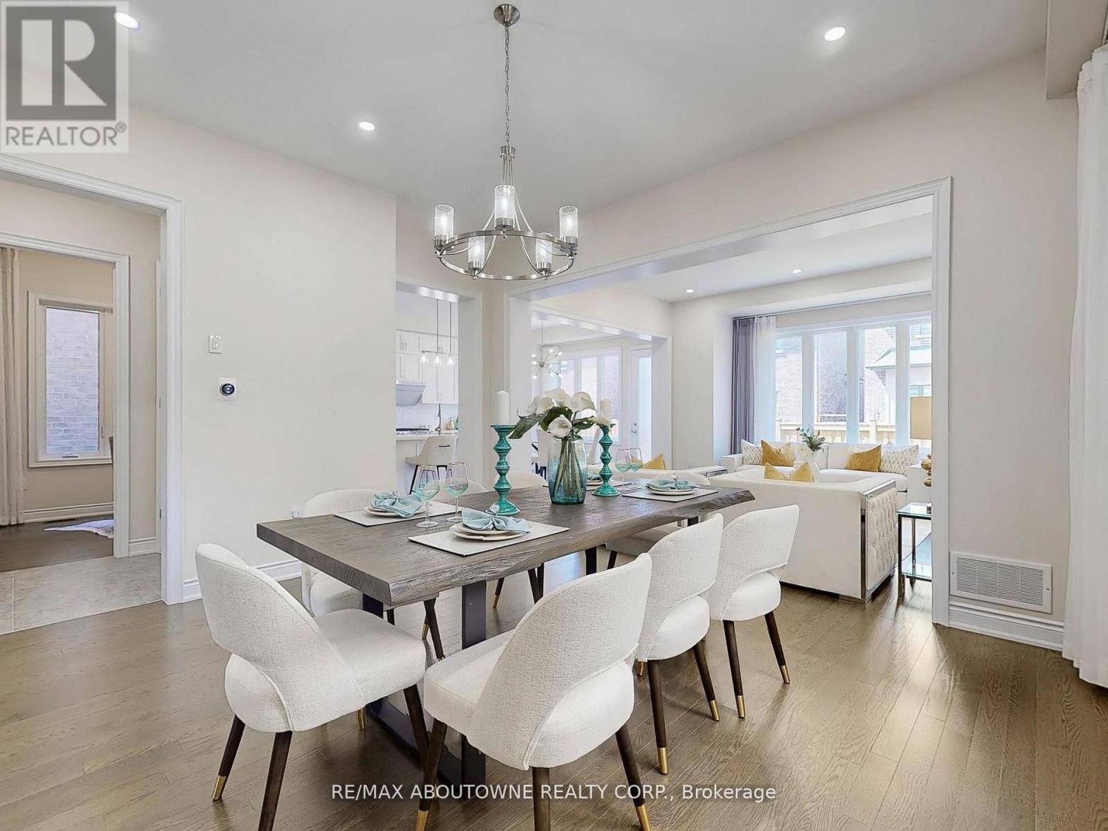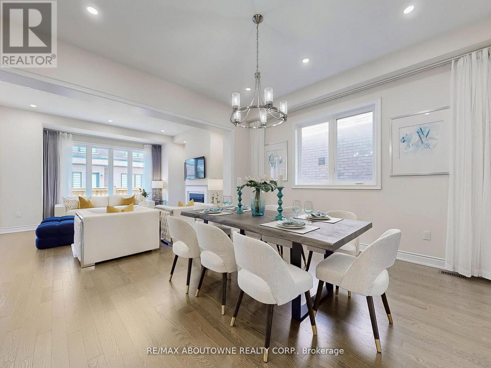 Welcome to 91 Hallaran Road, an impressive home where timeless curb appeal meets modern design. The striking exterior with brick, stone accents, portico entrance, and double doors creates a lasting first impression. Inside, a soaring foyer with a 10-foot ceiling sets the tone. The main level features hardwood flooring throughout, with tile in the foyer and kitchen. A formal dining room with chandelier and pot lights provides the perfect setting for entertaining, while the family room is centered around a gas fireplace and framed by extra-large windows overlooking the backyard. The gourmet kitchen includes Bosch refrigerator and dishwasher, KitchenAid gas cooktop and oven, a professional-grade hood, full wall cabinetry, and a large island with walkout to the backyard. This level also offers a private home office with large window and a mudroom with garage access. Solid hardwood stairs lead to the second floor with 9-foot ceilings and soft grey broadloom. The primary suite features a sitting area, walk-in closet, and a spa-like ensuite with double sinks, freestanding tub, and upgraded glass shower. Two bedrooms share a functional Jack & Jill bath, another has its own walk-in closet, and a fourth is a private suite with ensuite. A second-floor laundry with sink adds convenience. The finished 9-foot basement impresses with large windows, a recreation area, full bath with oversized shower, storage, and an unfinished room ready to be a bedroom. The backyard is fully fenced, flat, and easy to maintain ideal for barbecues, play, or quiet evenings. Located in Oakville's desirable Glenorchy neighbourhood, this home features extra-large windows with customized curtains throughout, and offers easy access to shopping, parks, and top-rated schools. (id:63357)