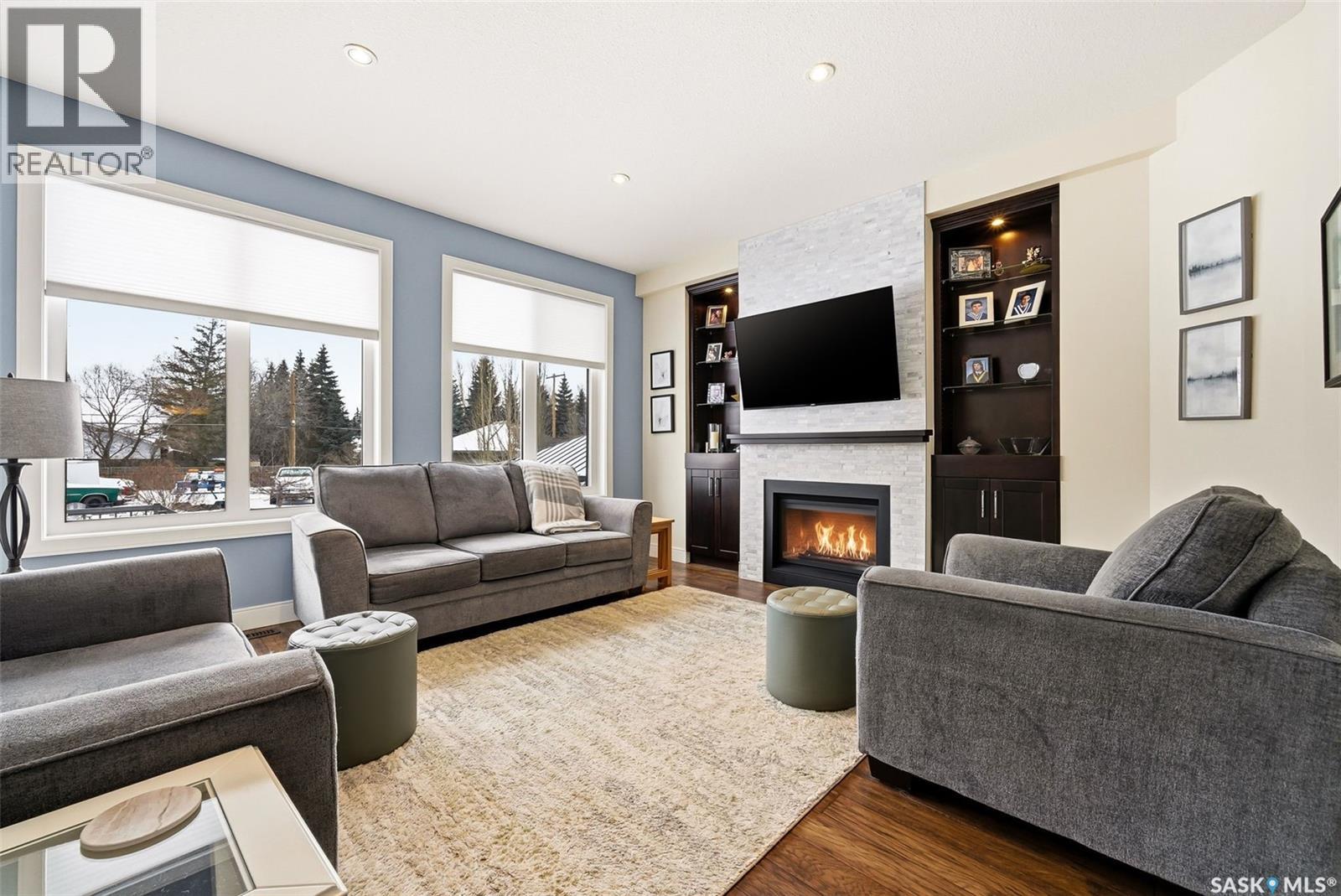 Welcome to 41 Lott Road East, a wonderful opportunity to own a home in the heart of White City. Set on a large lot with lane access at the back, this property offers the perfect blend of small-town charm and everyday convenience just minutes from Regina. The home features a functional layout with bright, inviting living spaces designed for comfortable family living and entertaining complete with natural gas fireplace. Large windows fill the home w/ natural light, creating a warm and welcoming atmosphere throughout. The kitchen and living areas flow seamlessly, making the space ideal for both daily life and gatherings with friends and family. The main floor features three generously sized bedrooms, the primary bedroom includes a walk in closet and 5 pc ensuite! Completing the main floor is a laundry room (no more hauling laundry up and down!) The triple attached heated garage leads into a well appointed mudroom that connects to the front entry. The fully finished basement adds exceptional value and versatility, featuring two additional bedrooms, a large recreation room, and a den; perfect for a home office, gym, or hobby space. The rec room is a standout, complete with a wet bar + electric fireplace, making it an ideal setting for movie nights, games, or hosting guests. Outside, enjoy a spacious yard with plenty of room to relax, garden, or entertain, all while appreciating the peaceful surroundings White City is known for. The property offers a 2 tier composite deck, gazebo, shed, hot tub, ample parking and outdoor space, room to build a detached garage (lane access) providing flexibility for families, hobbyists, or those looking to create their own backyard retreat. Located just minutes from schools, parks, walking paths, and local amenities, this home also offers easy access to Regina while maintaining the quiet lifestyle of a close-knit community. This is a fantastic opportunity for families, or anyone looking to enjoy the comfort + charm of White City living. (id:63357)