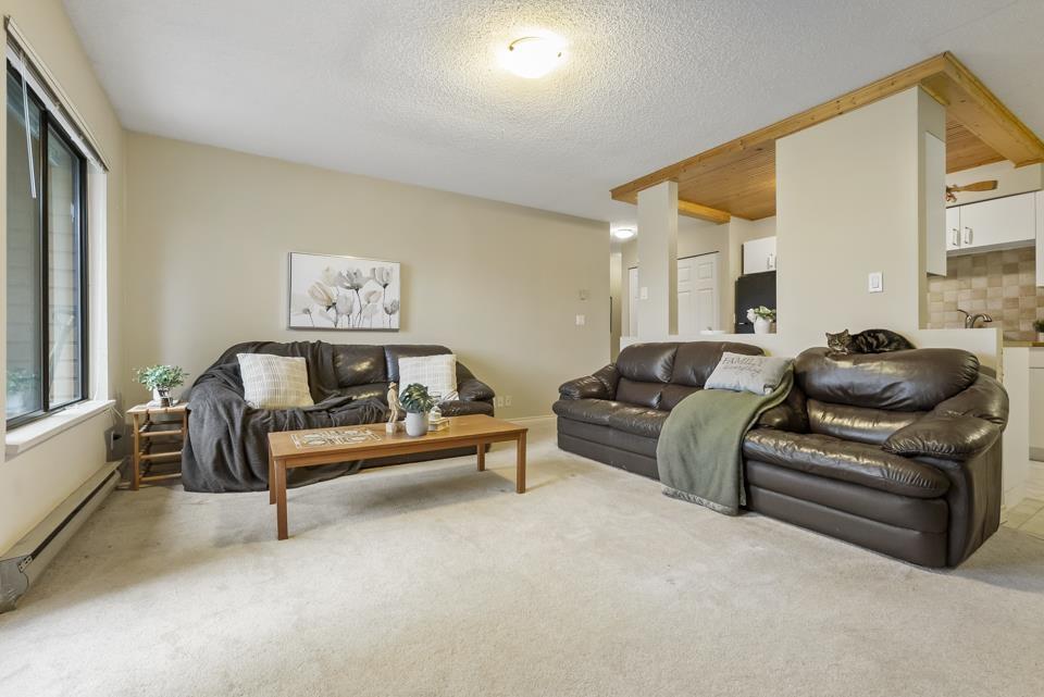 Inviting 2BR 1BTH Guildford upper-level townhome. Welcoming you home is a large picture window allowing tons of natural light to illuminate your spacious living & dining rooms opening onto a sizable balcony perfect for summer barbecues or relaxed weekend brunches. Clean white appliances coupled with ample cabinet space & butcher block-style counter tops make every meal preparation a delight. Both bedrooms offer mirrored closets with primary bed boasting an airy, sunlit ensuite. Ideal for all lifestyles, pet-friendly Lincoln's Gate boasts racquetball courts, outdoor pool, sauna & jacuzzi. Walk to Guildford Town Centre, Guildford Recreation Centre & the bus loop with easy access to Highway 1, both levels of schools, grocery, restaurants & every imaginable urban amenity within minutes. (id:63357)