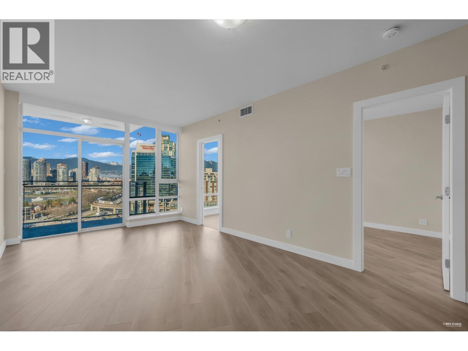 Welcome to Central at Olympic Village by Onni, a highly sought-after concrete building in one of Vancouver's most vibrant waterfront communities. This corner 1-bedroom + large den/solarium home offers expansive north-west facing city, mountain, and False Creek views, with abundant natural light throughout. The thoughtfully designed layout features a gourmet kitchen with stainless steel appliances, gas cooking, and a breakfast bar-perfect for entertaining. The spacious living area opens to a BBQ-friendly balcony, ideal for enjoying the stunning skyline. The bedroom is well-sized with a cheater ensuite showcasing a separate soaker tub and walk-in shower. Additional highlights include a flex/storage area, in-suite laundry, and forced-air heating & cooling with heat pump. Must see! (id:63357)