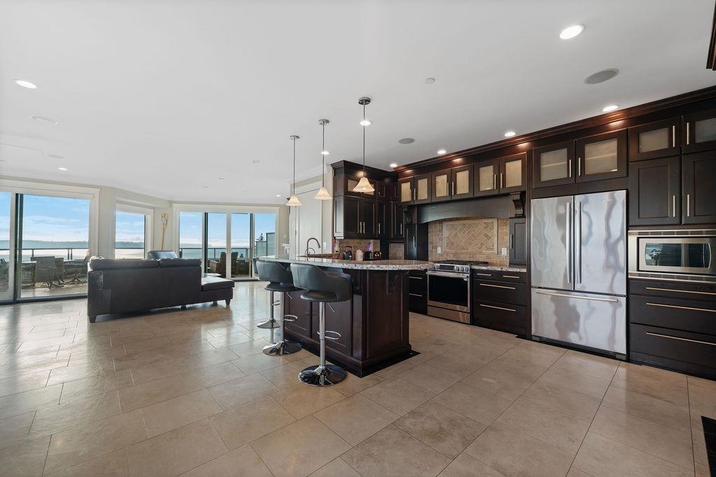 Sweeping ocean-view residence offering 6 bedrooms, 6.5 bathrooms, and over 5,700 sq ft of thoughtfully designed living space over 4 floors with in-home elevator. This expansive home captures panoramic ocean and mountain views from multiple levels and patios. The upper floor is ideal for entertaining, featuring an open-concept layout with a large veranda. The home offers generously sized bedrooms, each with its own ensuite, including an expansive primary retreat with a beautifully updated ensuite with large shower, soaker tub and walk-in closet. Enjoy the rec area outfitted with wet bar, living room, wine cellar, gym and movie theatre. A self-contained 2-bedroom suite with private entrance provides excellent flexibility for extended family or guests or tenant. (id:63357)