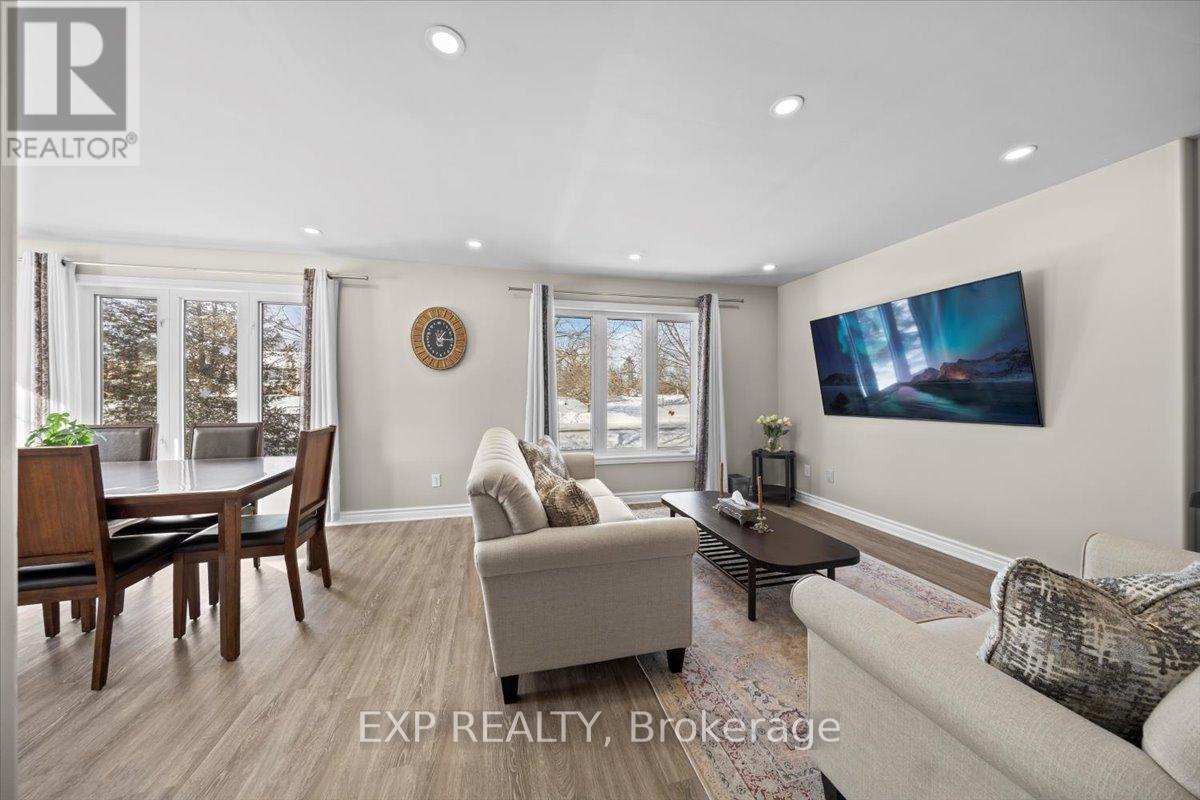 Welcome to this charming carpet-free 5-bedroom raised bungalow on a large corner lot, located in the desirable Cummings Road neighbourhood, in the north subdivision of Lyn, and close to Lyn Public School, known as one of the top-rated schools in the area-a major bonus for families looking for quality education nearby. This home truly brings everything together-comfortable living space, amazing recreation, and outdoor enjoyment all in one place. The main floor offers three spacious bedrooms, a bright open-concept living room, a generous kitchen, and a large dining area with plenty of room for entertaining, family gatherings, and everyday living. The home has been enhanced with upgraded lighting throughout, including modern pot lights, creating a warm and stylish feel in every space. You'll also love the upgraded 4-piece bathroom on the main floor, featuring a double bathtub with a bubble/jetted feature for a spa-like experience at home. Enjoy efficient year-round comfort with a heat pump system, plus added confidence with a UV water filtration system. Downstairs, you'll find a large recreation room featuring a cozy natural gas fireplace-the perfect spot for movie nights, kids' play space, or relaxing evenings at home. Two additional bedrooms, extra storage, and a 3-piece bathroom complete the lower level. The fully insulated attached two-car garage is a standout feature-finished with plywood interior walls and upgraded with 240V plugs plus a generator connection plug/switch, and includes custom built shelving for excellent organization and storage. Step outside and enjoy the backyard retreat featuring a stone patio and a large pergola, perfect for summer BBQs and outdoor lounging. A powered workshop/storage shed adds excellent space for seasonal storage and equipment, also featuring custom shelving-ideal for keeping everything neatly stored and accessible. This home truly checks all the boxes-space, upgrades, comfort, and lifestyle. Book your private showing today. (id:63357)