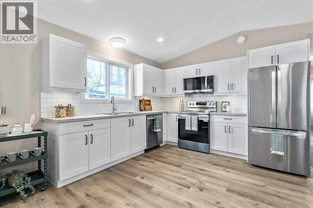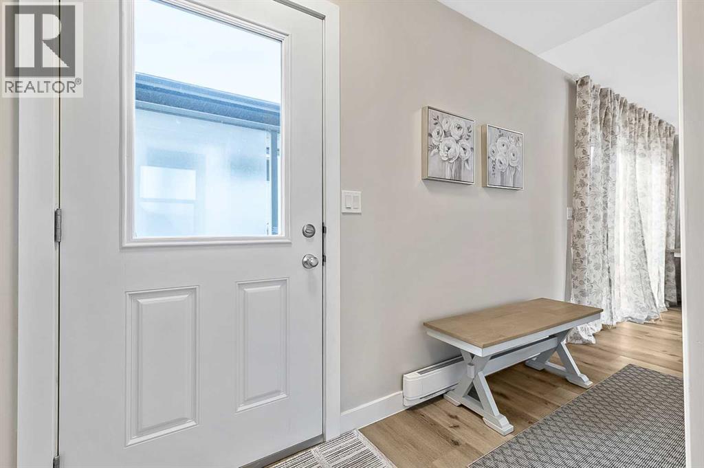 Here’s a great opportunity to own a new affordable 2 bedroom home located on the Black Diamond side of Diamond Valley, within walking distance to most amenities. This manufactured home sits on its own small lot so there are no monthly pad fee’s. This home is 960 sq ft with room for parking for 2 vehicles at the rear of the home. The home sits on a screw pile foundation, with plywood sheeting underneath. High quality construction with All Weather Windows, 2x6 construction, extremely well insulated with R-40, 25 year asphalt shingles on roof, upgraded Cal XL wood composite siding, upgraded luxury vinyl plank flooring, air exchange system, all drywall inside with smooth ceilings, composite decking with a cedar pergola. The home is bright and welcoming with neutral colors through out. The main living area is a vaulted open floor plan. The bedrooms are located at either end of the home. Stacking laundry is located in the large 4 pc bathroom. This home comes with a 10 year home warranty. This lovely home is ready to move into and a quick possession is available! (id:63357)