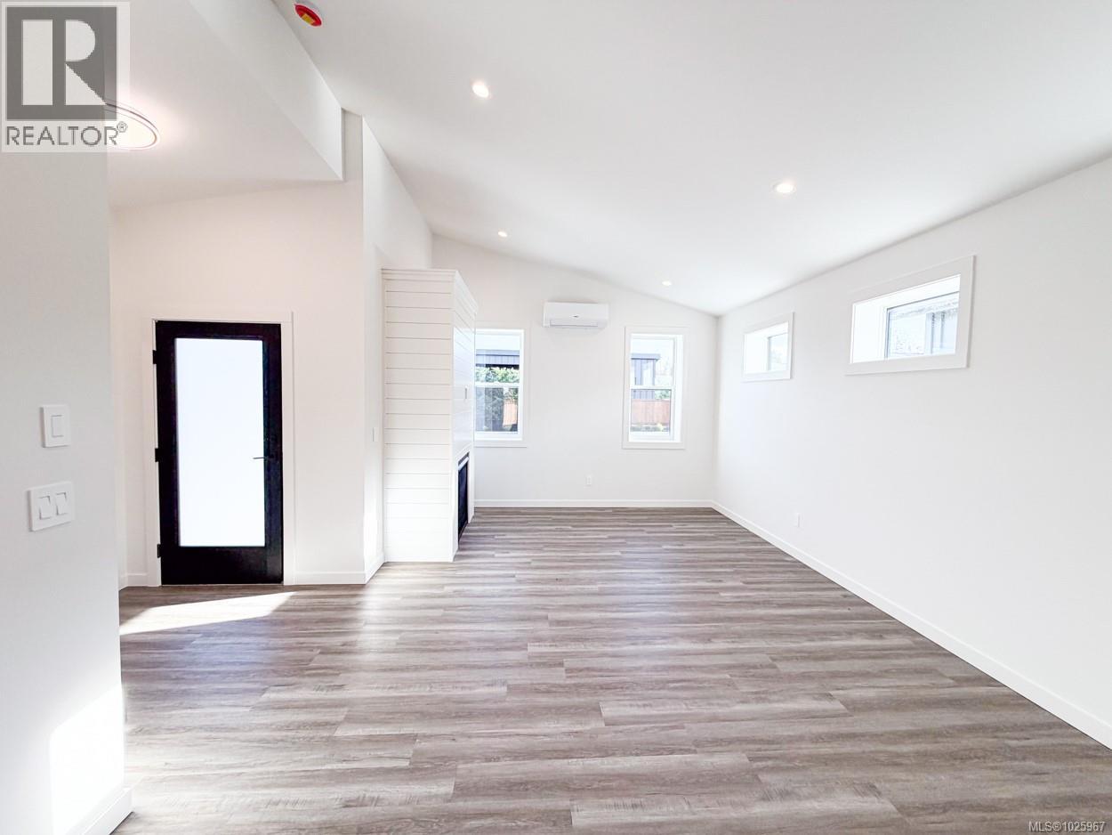 New and Improved, the Northern Flicker is a stunning 2 bed 2 bath home offering incredible value. Spanning over 1,200 sq ft, you'll be impressed with the spacious layout, contemporary design and high end finishings. Turn-key ready with full appliance package, quartz countertops, heat pump, modern kitchen cabinets, large island and well appointed laundry room with storage, sink and quartz countertops. The open concept kitchen-dining-living area is light and airy with soaring 12 ft vaulted ceilings and 7 windows for plenty of natural light. You'll love the large gas fireplace for efficient and cozy heat. The show stopper is the 14' x 10' covered rear patio, perfect for relaxing with family and entertaining friends. With a metal frame, metal siding and metal roof, maintenance Is minimal. Notice the thick 12' walls, high energy performance and low running costs. GST applies. The Flats of Cumberland is a brand new community of 56 beautiful homes. (id:63357)