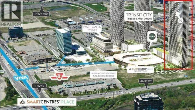Welcome to Transit City 3 in the heart of Vaughan Metropolitan Centre! Perched on the 50th floor, this bright 1+Den suite offers stunning north views and a functional open-concept layout with 9-ft ceilings and floor-to-ceiling windows. Approx. 590 sq. ft. plus balcony, featuring a modern kitchen with quartz counters and built-in appliances. Spacious primary bedroom with large closet, versatile den ideal for home office, laminate flooring throughout, and ensuite laundry. Enjoy premium amenities including 24-hr concierge, party room, rooftop terrace, and more. Steps to VMC Subway, YMCA, shops, dining, York University, and easy access to Hwy 400/407. Ideal for first-time buyers or investors seeking location and lifestyle! (id:63357)