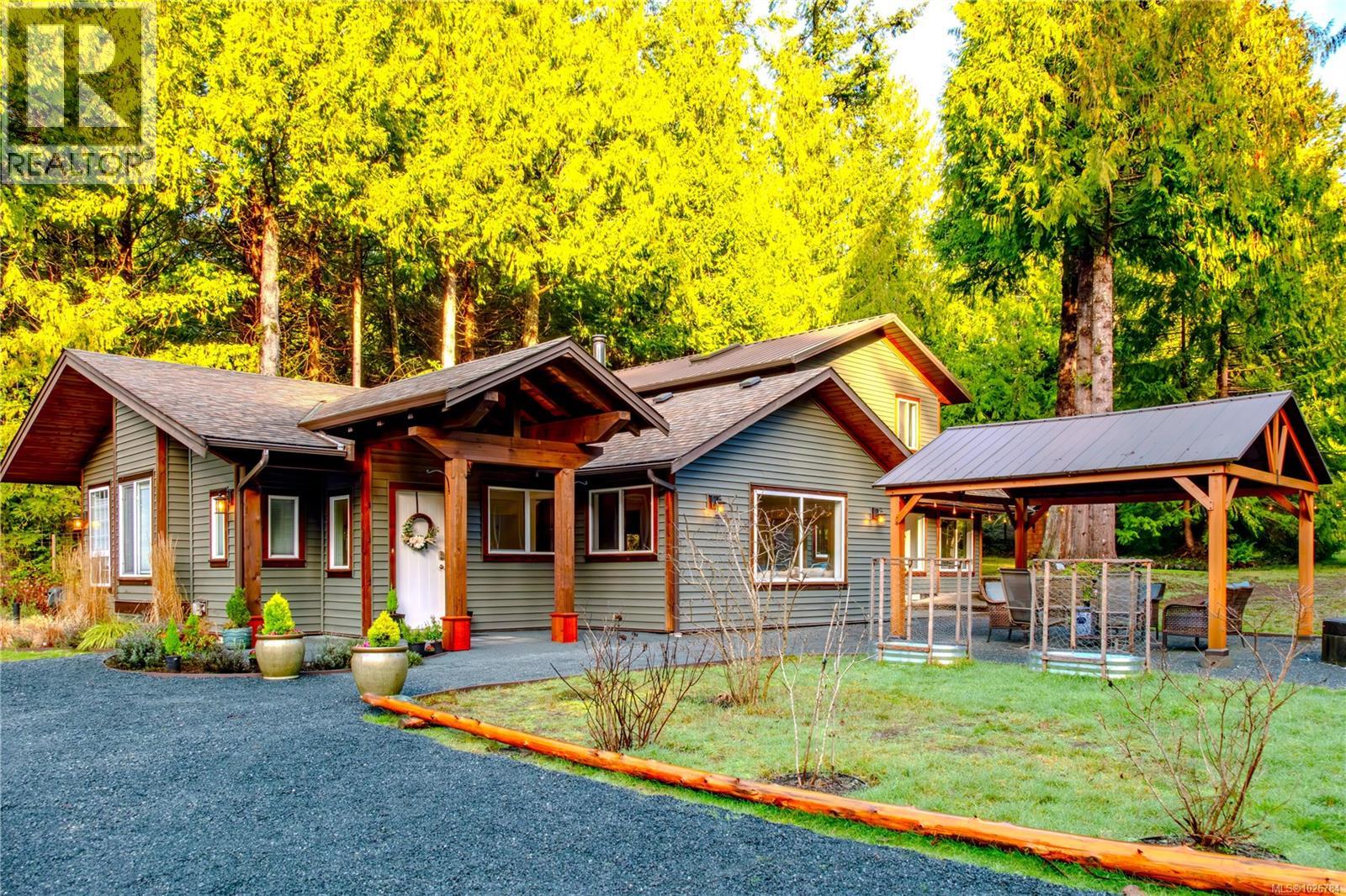 TWO HOMES, one exceptional property with endless possibilities. This sun-filled 2.89-acre parcel offers beautiful usable land, natural forest privacy, partially fenced, & expansive parking. The main home features 2,465 sq. ft., with 4 bedrooms and 2.5 baths, thoughtfully renovated in 2021 to blend comfort and style. Large windows invite natural light throughout, while a heat pump and cozy wood stove provide year-round comfort. The property also includes a well-appointed 852 sq. ft. secondary home with 2 bedrooms and 1 bath, soaring ceilings, & a stunning post-and-beam covered deck—perfect for extended family, guests, or rental income. BONUS 442 sq ft shop with 14' ceilings, & 428 sq ft office & storage space. This is a rare opportunity offering multi-generational living, potential home-based business, gardening, hobbies, privacy, & lifestyle in one beautiful setting. Close to quintessential Qualicum Beach, Spider Lake, Deep Bay Marina & the Arrowsmith Golf Course. (id:63357)