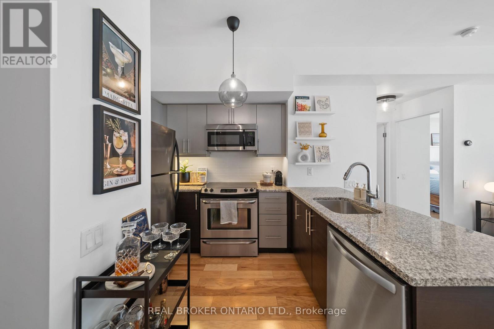 Welcome to this sun-filled, south-facing, 1 Bedroom + Den Suite at Redpath Residences in the heart of Yonge & Eglinton. This home has it all; functional full-sized stainless-steel appliances, with the perfect amount of cabinet and granite counter space to comfortably cook and entertain. Thoughtfully renovated in 2019, it features upgraded engineered hardwood flooring throughout, smooth 9' ceilings, and modern light fixtures, creating a clean and contemporary feel. Enjoy a quiet morning coffee, sunbathing in the daytime, or calming glass of wine in the evening on your double-wide, 120 sq. ft. balcony, with custom designed wooden patio tiles and astro turf (yours to keep). Even more impressive is the scenic waterfront and City skyline views that you'll be able to enjoy throughout all seasons. This unit also includes one parking space and storage locker near each other and right by the elevator. Residents can enjoy an impressive range of amenities in this boutique and well-managed condo building. The penthouse level amenities include the fitness center, complete with City skyline views and floor to ceiling windows and recently upgraded party room which is perfect for entertaining large groups. The rooftop terrace includes propane BBQs, hot tub, lounge chairs and a courtyard garden. The main floor amenities include fenced in dog-park, basketball court/yoga room, media room, co-working/boardroom, and guest suites. This location has many great restaurants, bakeries, and shops on Mount Pleasant Avenue and the Yonge Eglinton Centre, making this location the perfect walkable neighborhood. This vibrant area also offers top-rated schools, local parks, and access to the Beltline trail system. With easy access to TTC subway, Eglinton LRT, DVP & 401, commuting across Toronto is effortless. This home offers the perfect mix of sophistication, comfort, and an unbeatable location. (id:63357)