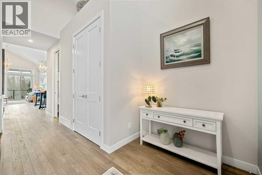 Exceptional rare END-UNIT villa bungalow with ADDED SIZE & WINDOWS vs interior units backs & sides onto a NATURAL RESERVE, offering privacy & serene views. Featuring TRIPLE-PANE WINDOWS, IN-FLOOR HEATING throughout the entire basement, BUILT-GREEN construction, combining energy efficiency with an elevated design. The front foyer makes an immediate impression with a VAULTED CEILING, HARDWOOD FLOORING THROUGHOUT THE ENTIRE MAIN LEVEL, UPGRADED RAILING with pewter spindles & 8’ DOORS. A 2-piece powder room with a 1-piece Toto toilet; is thoughtfully placed near the entry. The back of the home opens into a stunning VAULTED living space with an open-concept from the foyer to lifestyle room. The EAST-FACING DINING AREA features a cantilever design, 2 ADDITIONAL WINDOWS & a striking WALLPAPER FEATURE WALLS. The kitchen is beautifully appointed with UPGRADED QUARTZ, an oversized island with Blanco sink, pantry closet, UPGRADED TILED BACKSPLASH, UNDER-CABINET LIGHTING, chimney-style hood fan, GAS STOVE, garburator, INSTANT HOT WATER & REVERSE OSMOSIS. Extended-height cabinetry with soffit fillers, SOFT-CLOSE MECHANICS, a lower microwave shelf & two-tone cabinet design complete the space. One-year-old Samsung full-size STEAM WASHER & DRYER and a Bosch dishwasher add further value, with reverse osmosis connected to the fridge, sink & hot water on demand. The rear lifestyle room is anchored by an electric fireplace with stone surround & a full wall of windows, including 8’ DUAL SLIDING PATIO DOORS with upper TRANSOM WINDOWS. Step out to the PRIVATE VINYL DECK with GLASS RAILING, BBQ GAS LINE & a covered upper section — perfect for enjoying your natural surroundings. The main-floor primary bedroom offers a 9’ knockdown ceiling, reserve views & CUSTOM WINDOW SHUTTERS. A walk-through closet with CUSTOM BUILT-IN'S leads to a luxurious 4-piece ensuite featuring HEATED TILE FLLOORS, QUARTZ COUNTERS, dual sinks, a water closet with a 1-piece Toto toilet & a FULL-SIZE STEAM SHOWER with SEAMLESS ENTRY, linear drain, built-in bench & RAIN DROP SHOWER HEAD. Enjoy the warmth with IN-FLOOR HEATING IN THE DEVELOPED BASEMENT, 10’ ceilings, & UPGRADED CARPET/UNDERLAY. Beginning with a side flex space which includes a dry bar with QUARTZ COUNTERS, tile backsplash & WINE FRIDGE, along with an added storage closet. A 2ND COVER PRIVATE PATIO is accessed through DUAL PATIO DOORS, extending the living space outdoors. Additional areas include an open office space, pool table area, & a tiled 3-piece bathroom with storage vanity, upper vessel sink, AIR-JETTED TUB & touch-free one-piece toilet. 8 BUILT-IN SPEAKERS are connected to a centralized switch box, and jukebox. The switchbox, jukebox & pool table are included in the sale. Added mechanical upgrades; ROUGN-IN FOR CENTRAL AIR, HOT WATER ON DEMAND, HRV, WATER SOFTENER, EXTERIOR JOIST SPRAY FOAM INSULATION. Backing onto PROTECTED GREEN SPACE with PREMIUM FINISHES, NON SMOKING & NO PETS, just an exceptional blend of luxury, functionality & privacy! (id:63357)